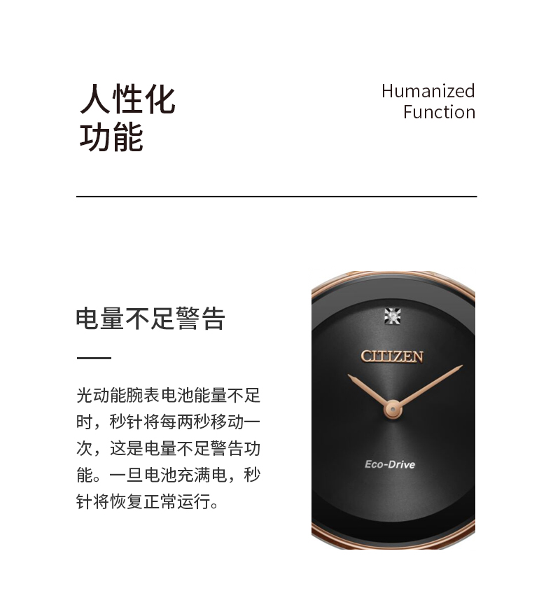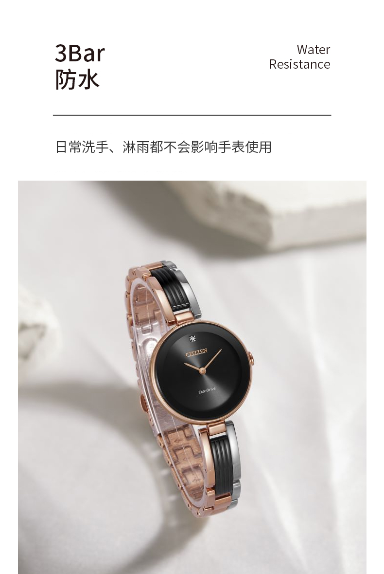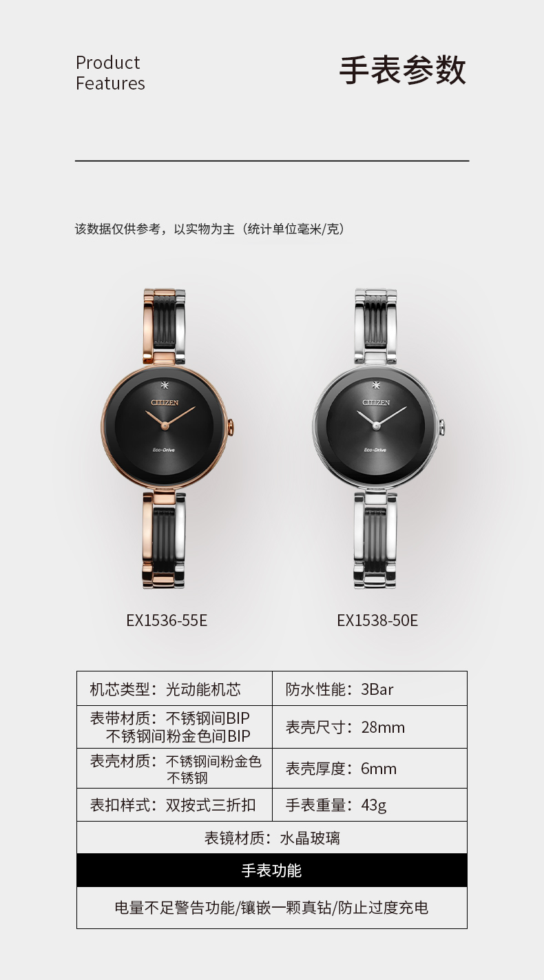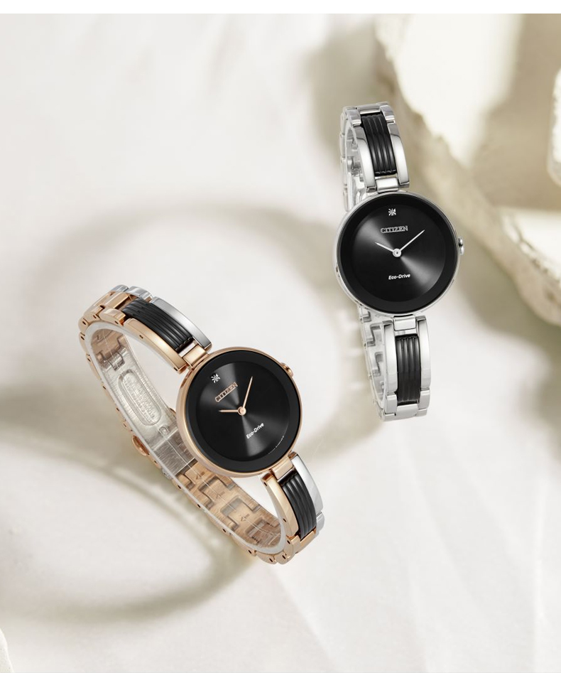 Citizen西铁城 光动能手表女日韩表光动能黑色表盘钢带EX1536-55E 黑色