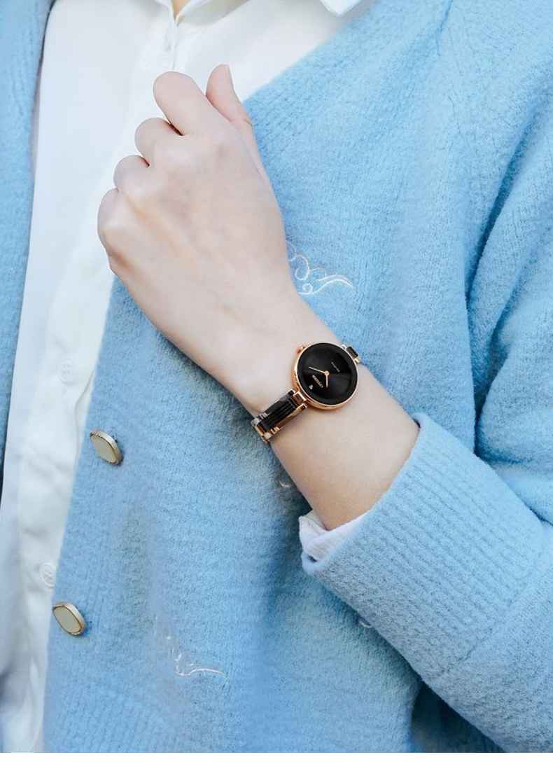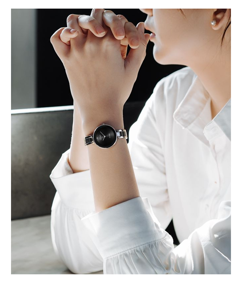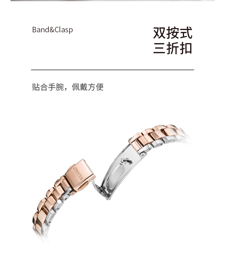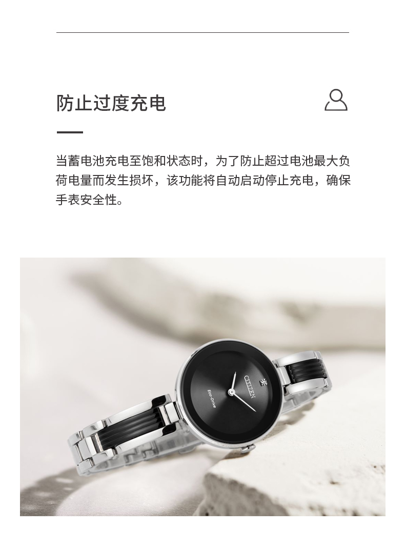 Citizen西铁城 光动能手表女日韩表光动能黑色表盘钢带EX1536-55E 黑色
