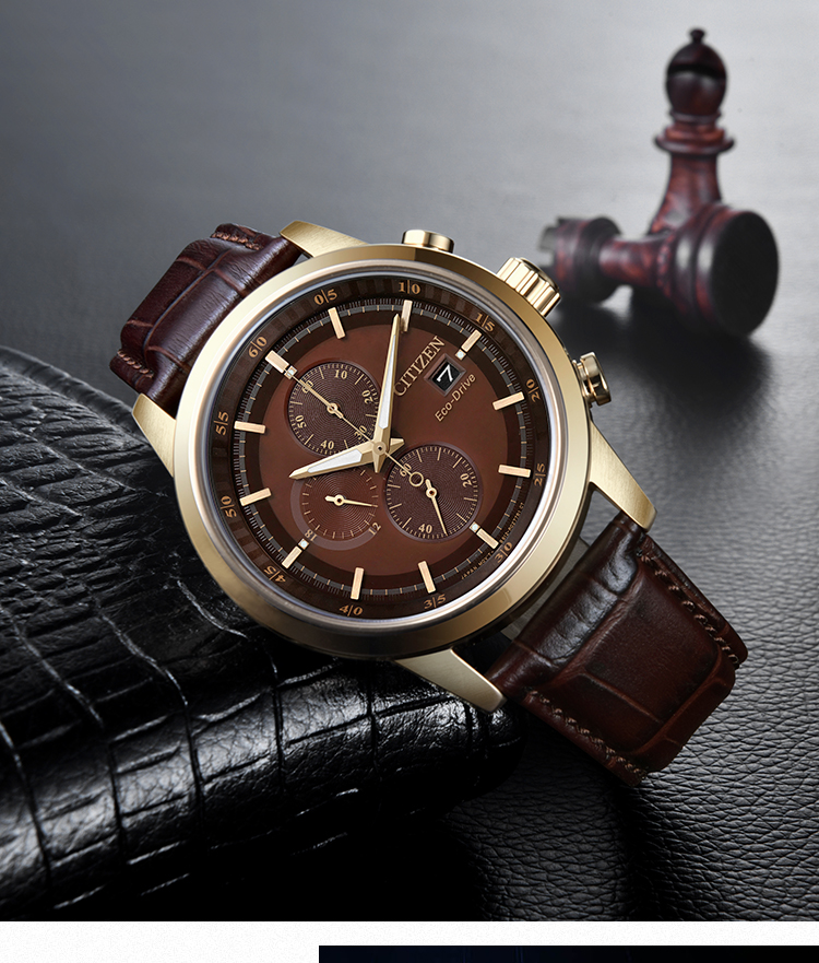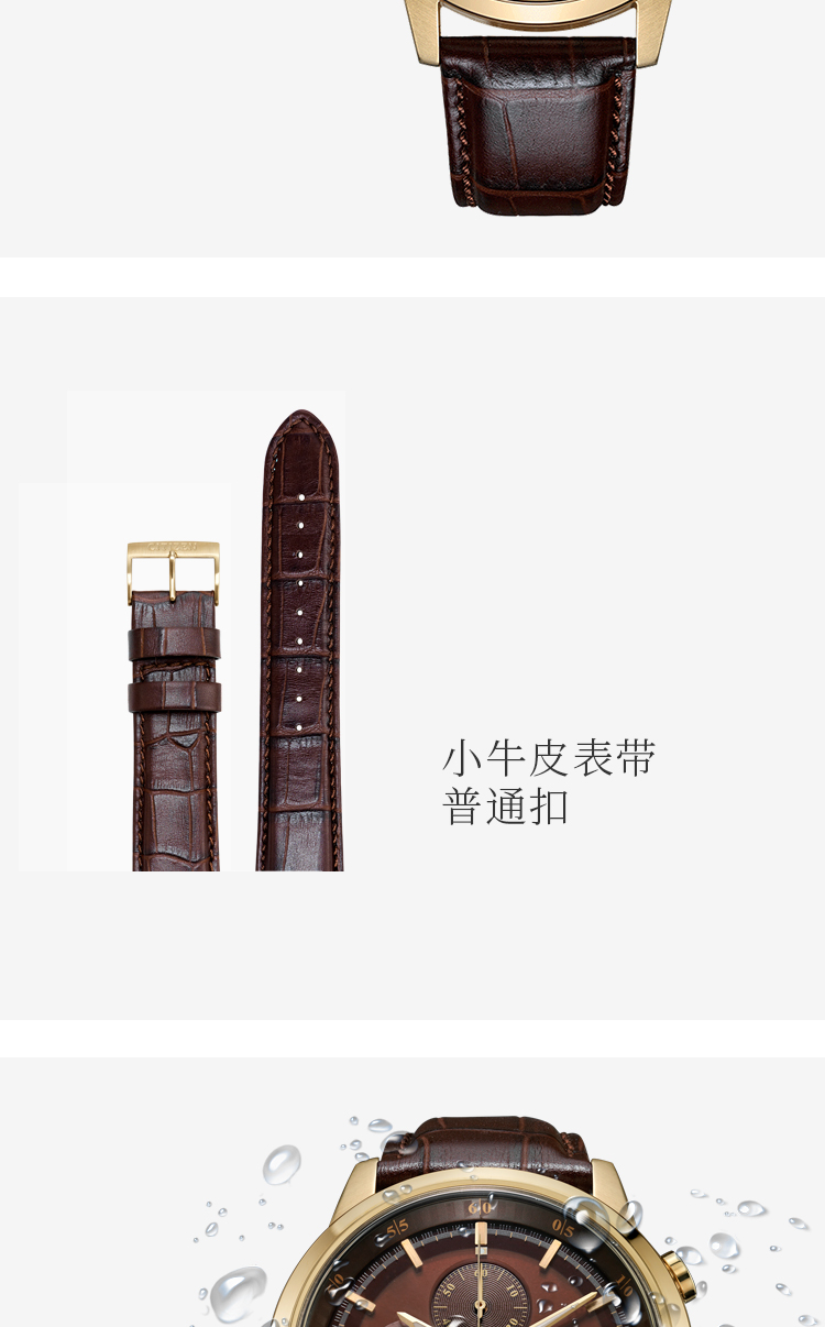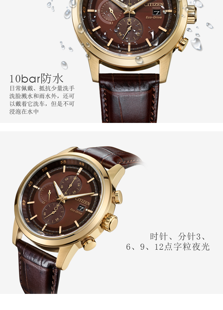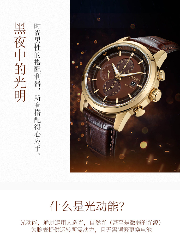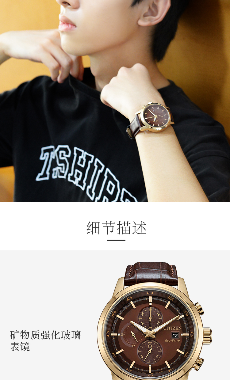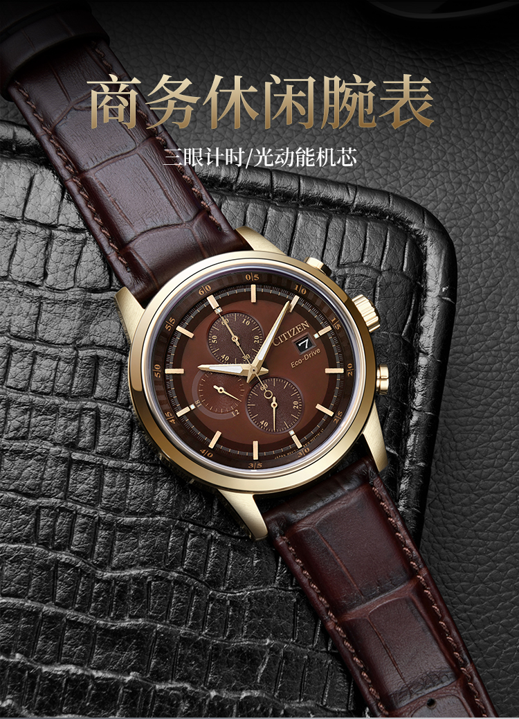 Citizen西铁城 光动能手表时尚商务三眼男表CA0612-14X 褐色