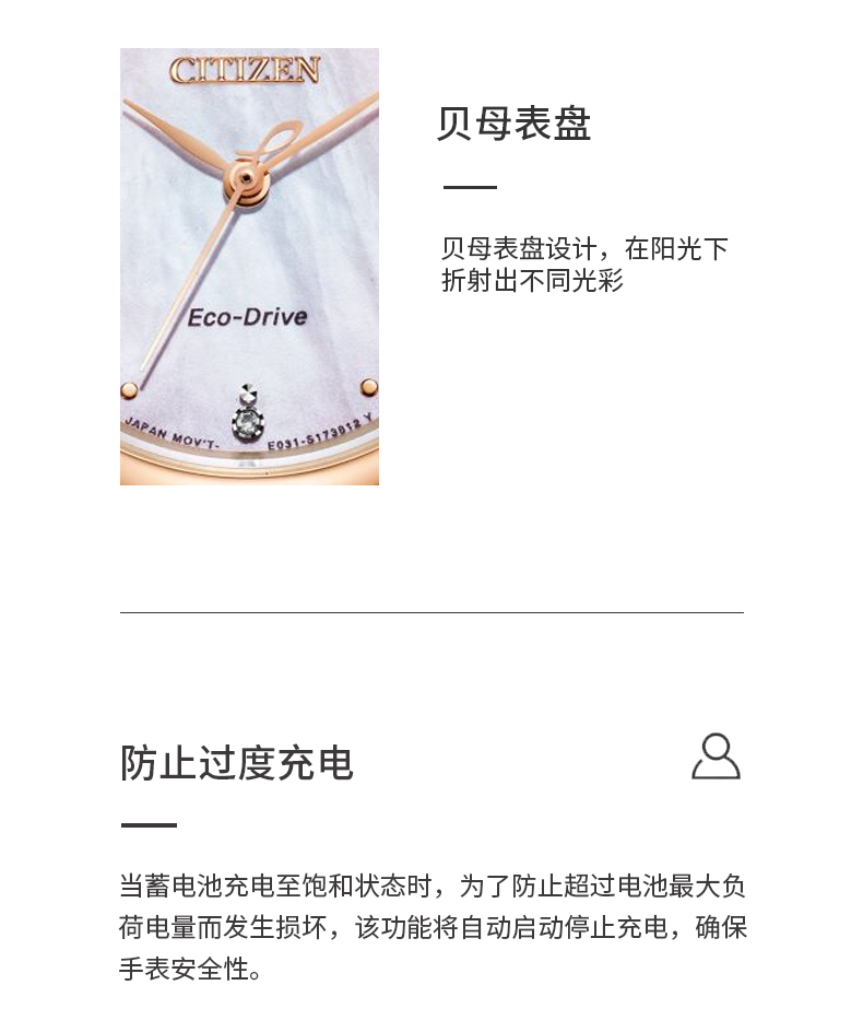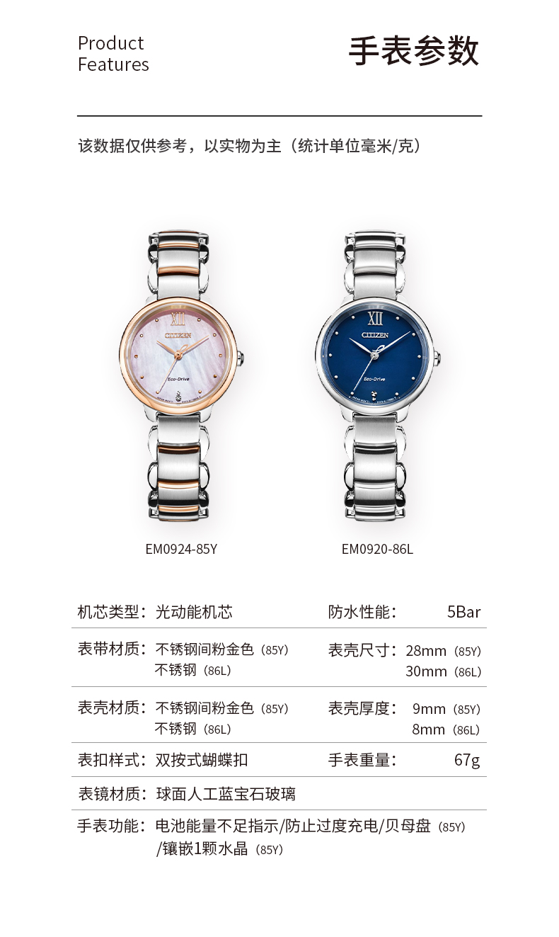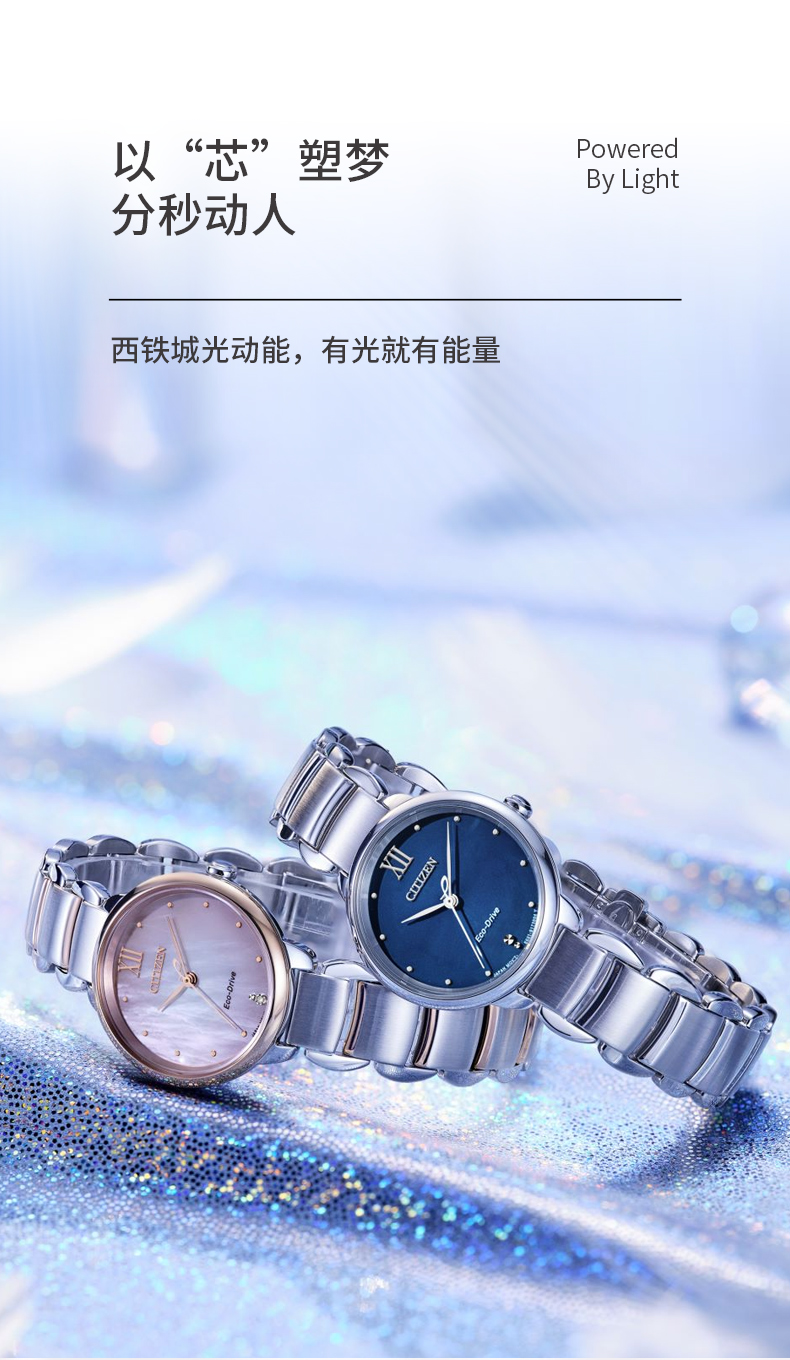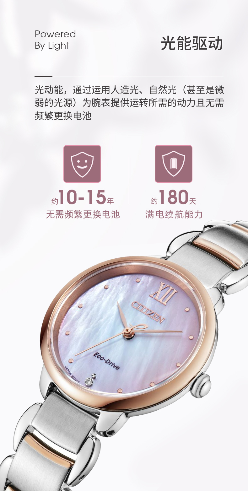 Citizen西铁城 花语风吟系列 光动能手表时尚女表EM0924-85Y 珠光贝母
