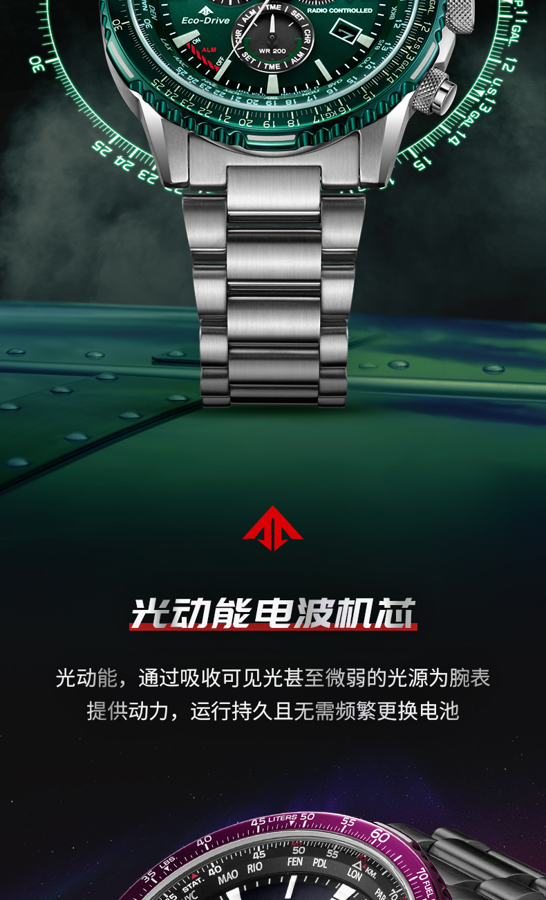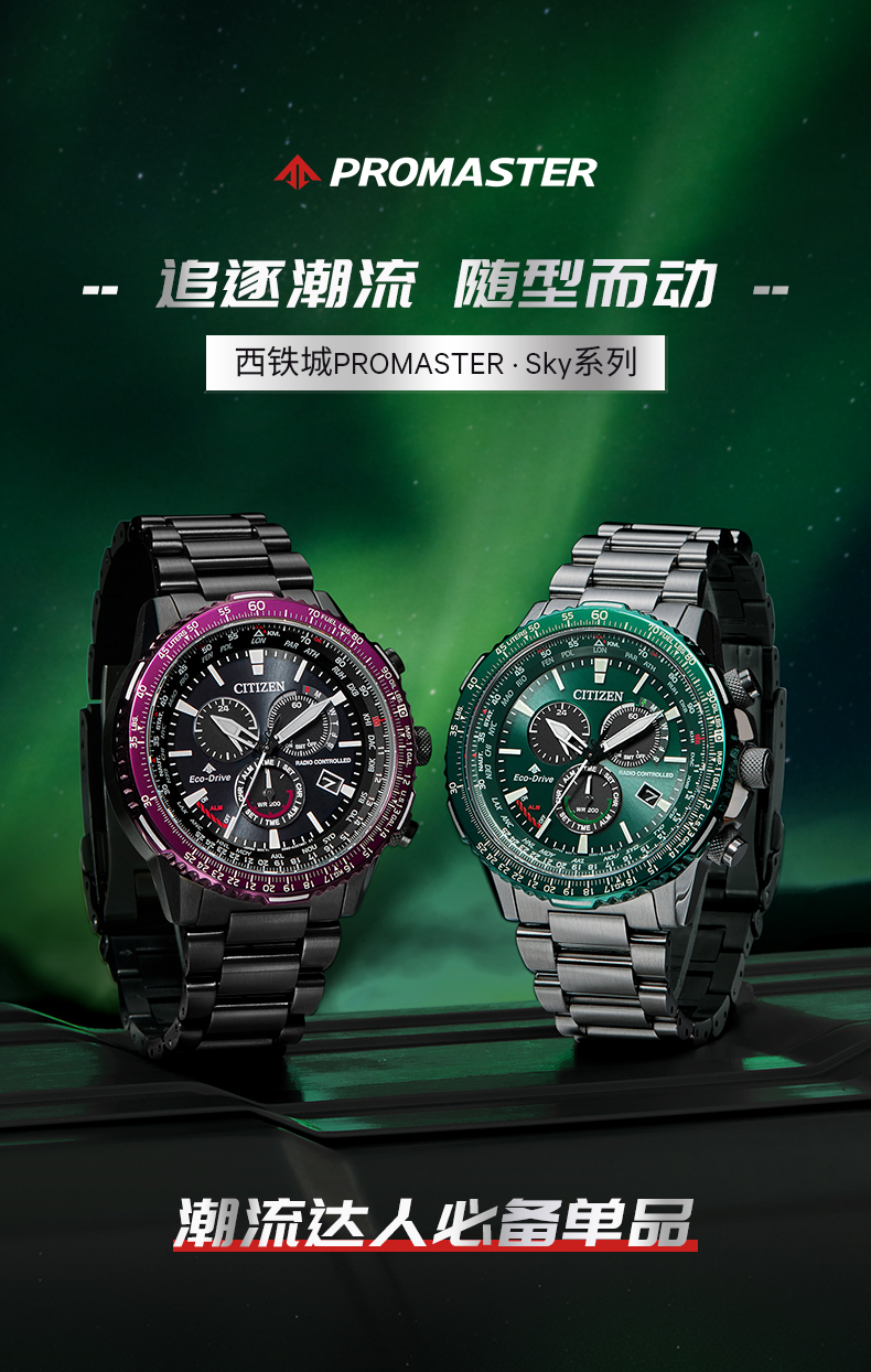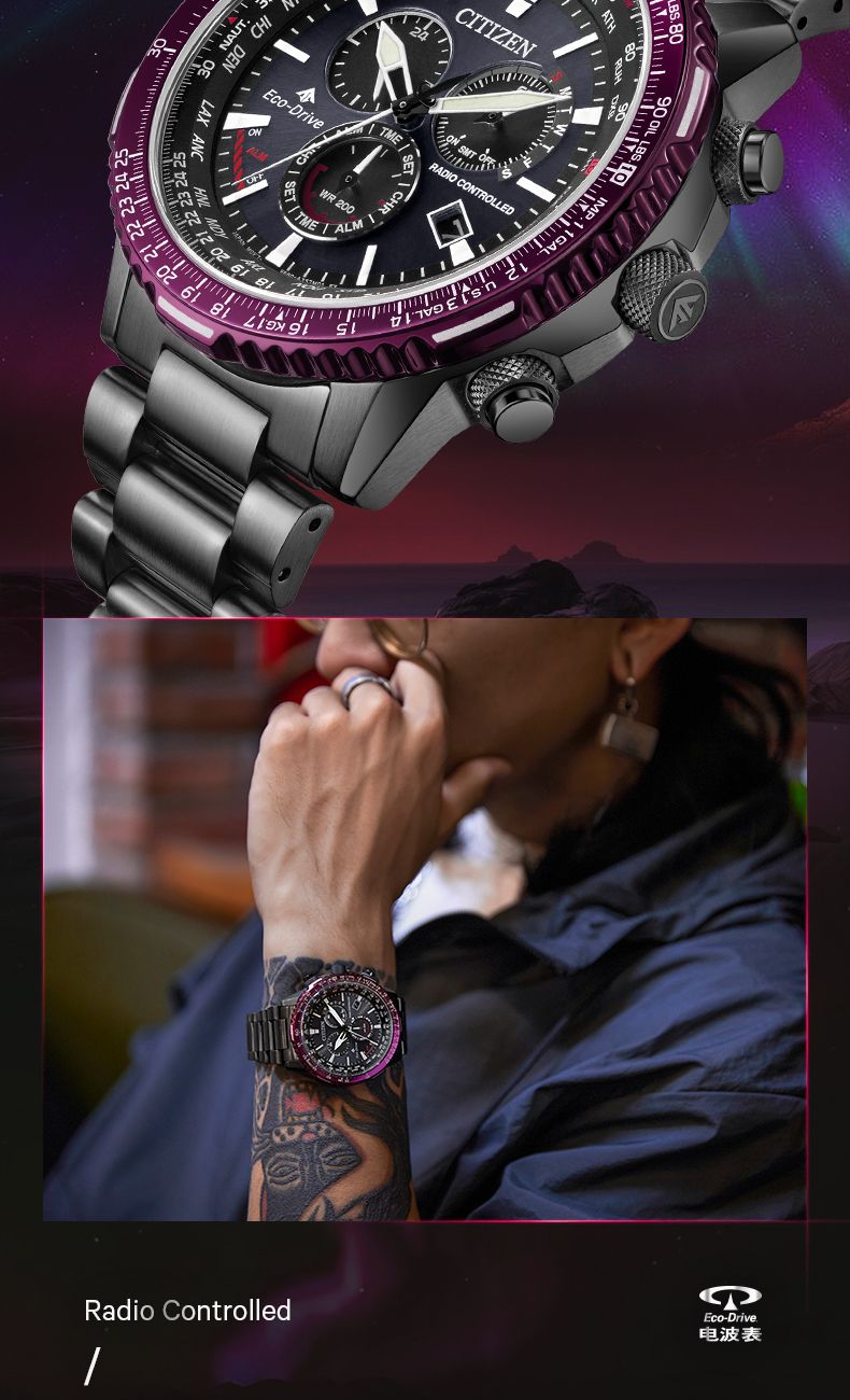 Citizen西铁城 光动能电波手表时尚炫酷黑红男表CB5009-55E 紫色