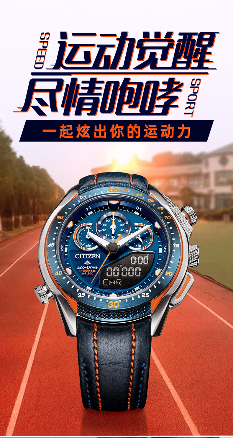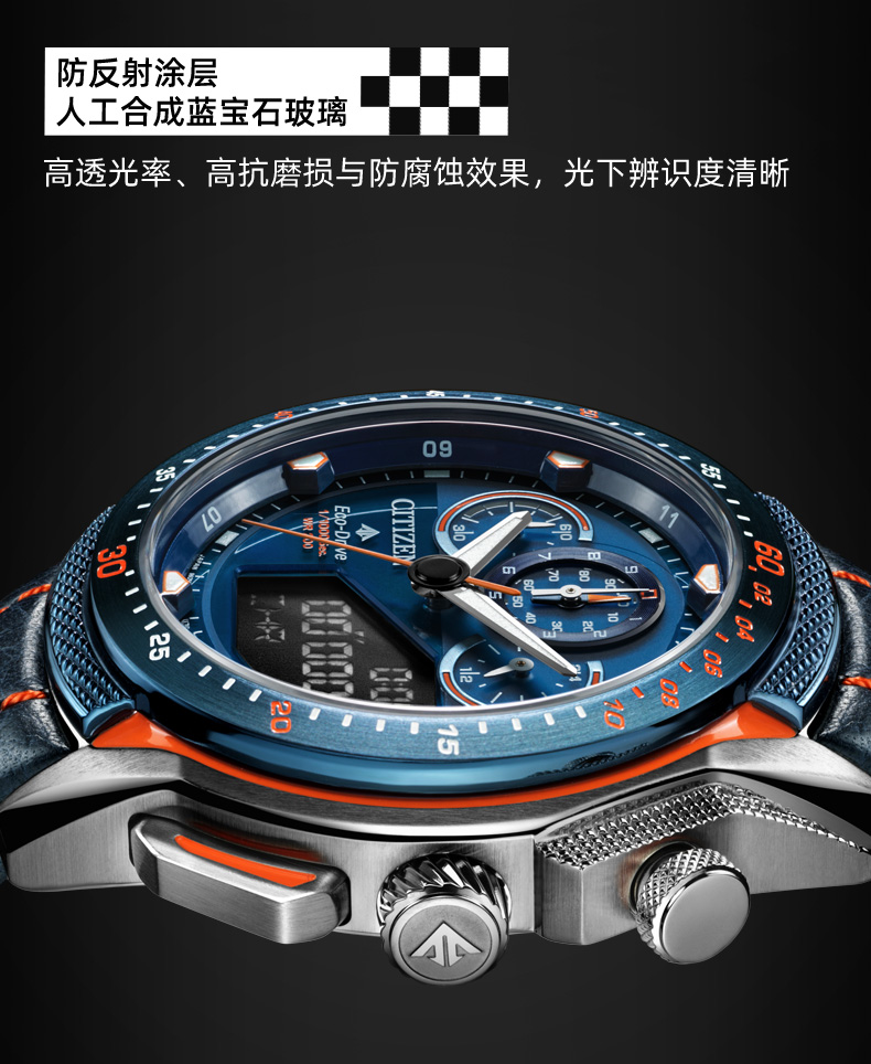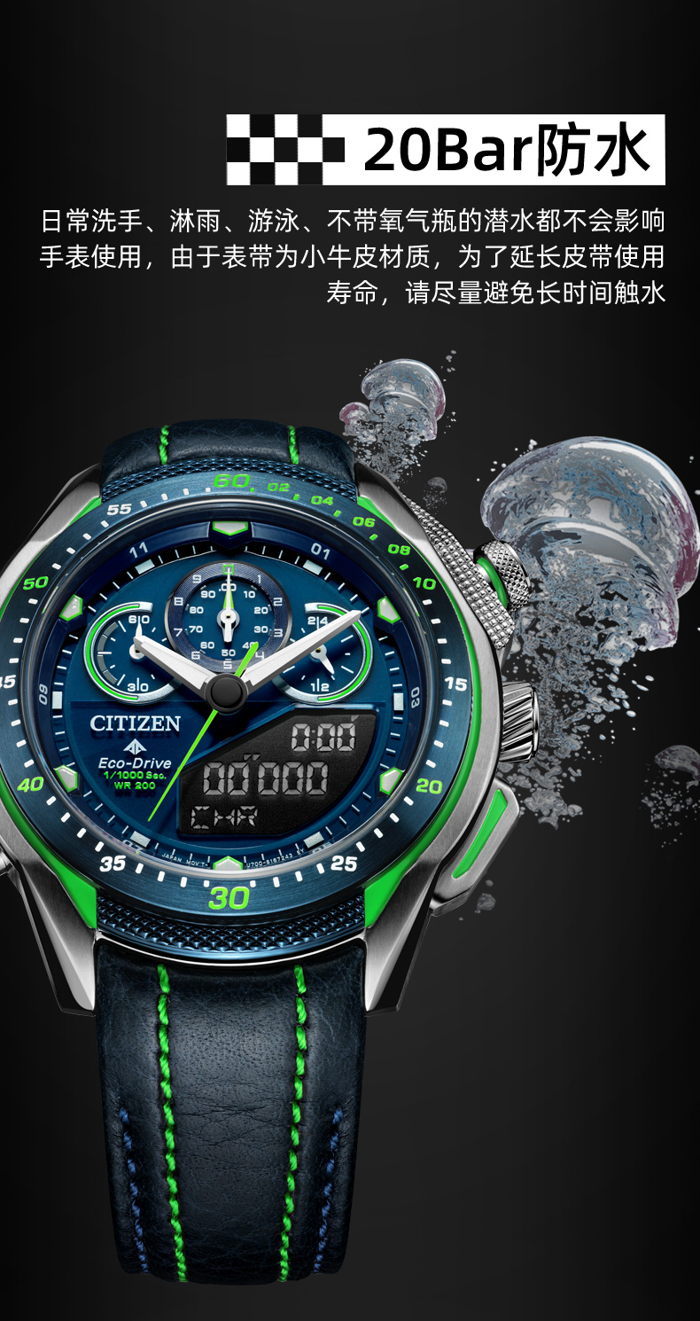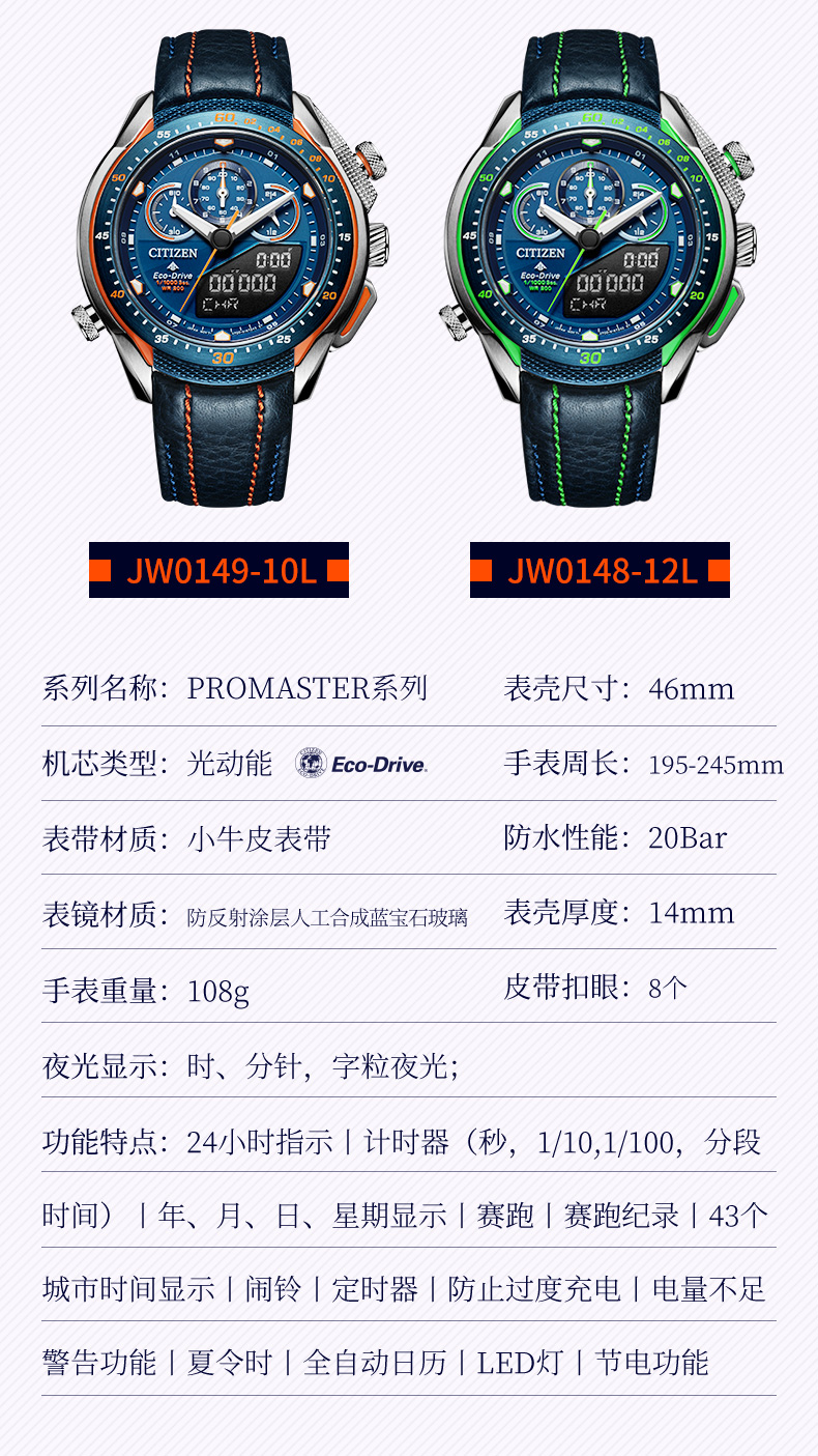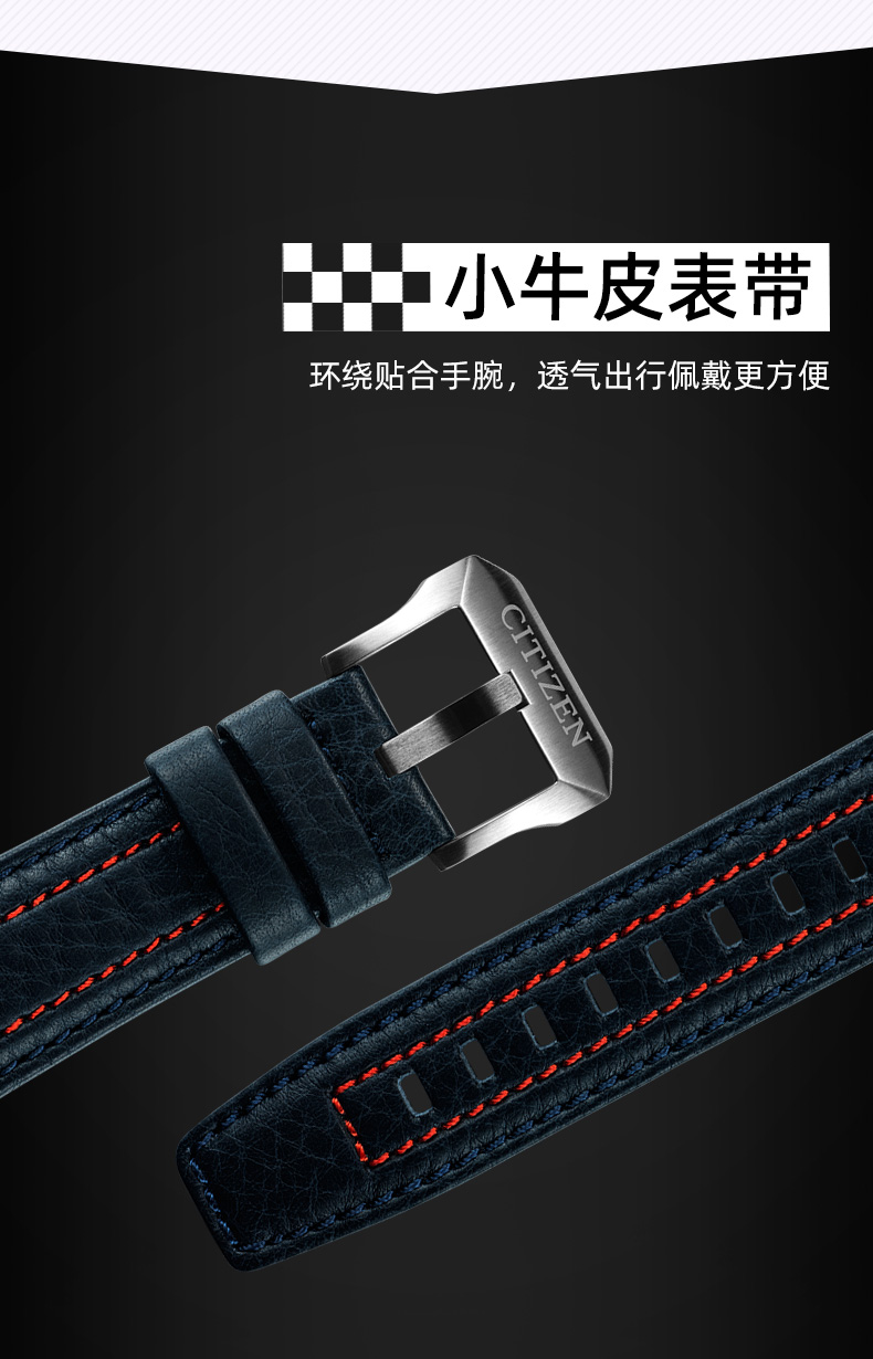 Citizen西铁城 光动能手表世界计时款三眼蓝盘皮带时尚运动男表 JW0149-10L 深蓝色