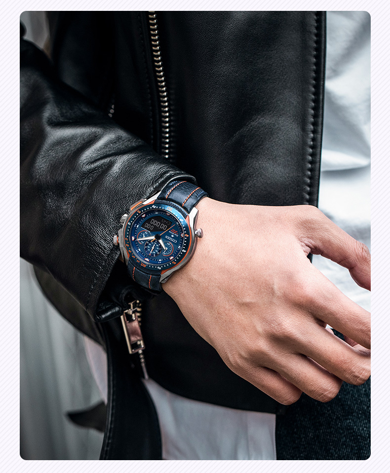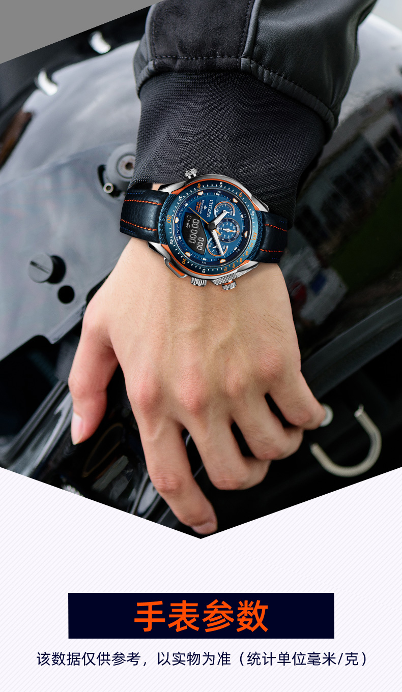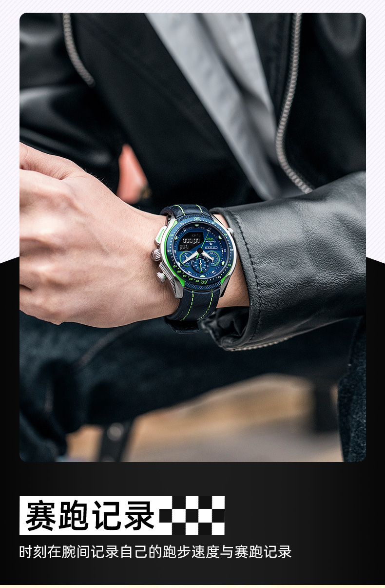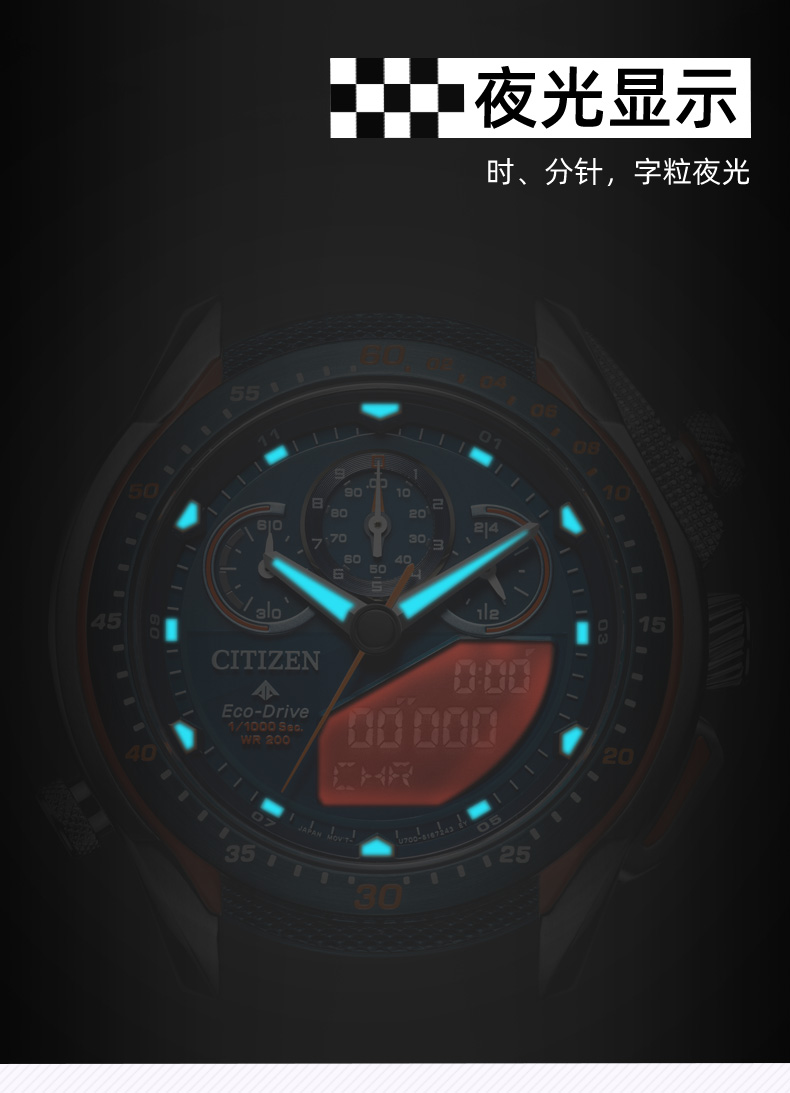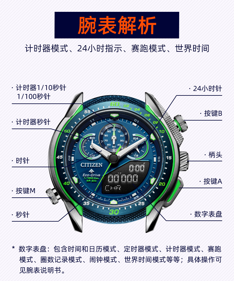 Citizen西铁城 光动能手表世界计时款三眼蓝盘皮带时尚运动男表 JW0149-10L 深蓝色