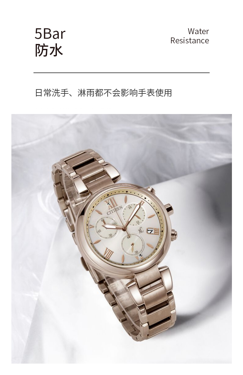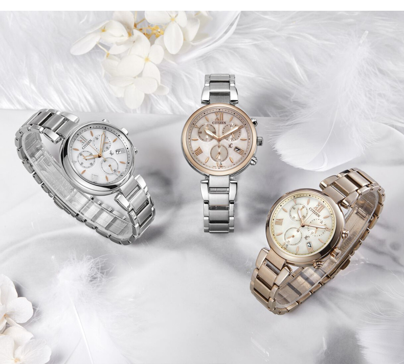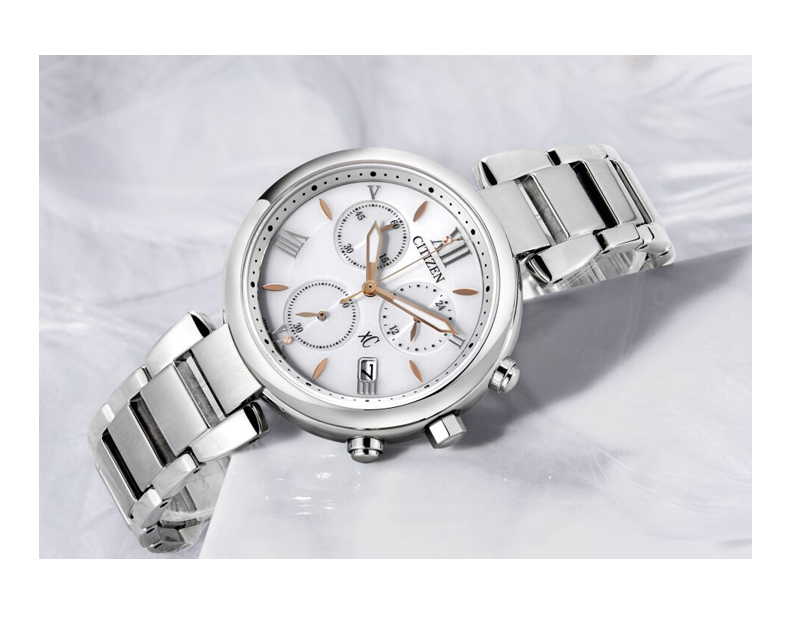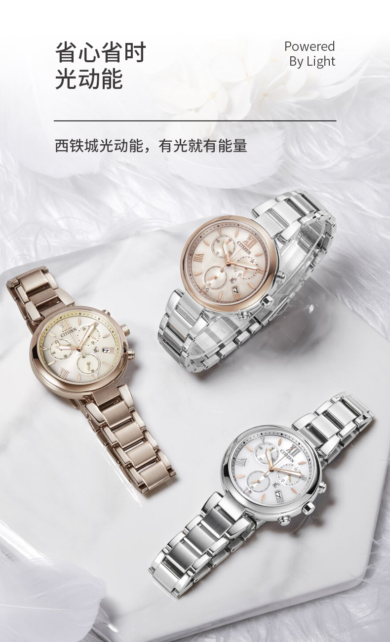Citizen西铁城 xC系列 光动能手表时尚三眼白盘钢带女表FB1450-53A 白色