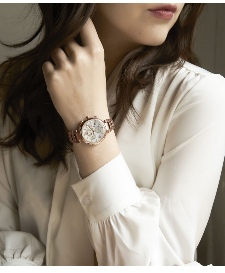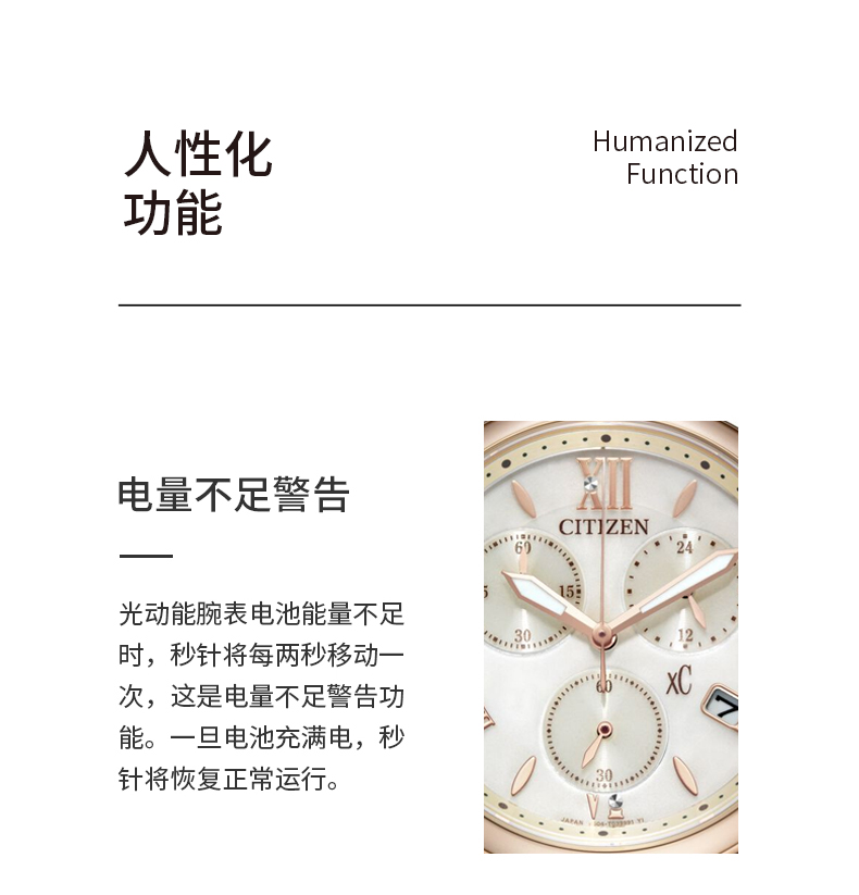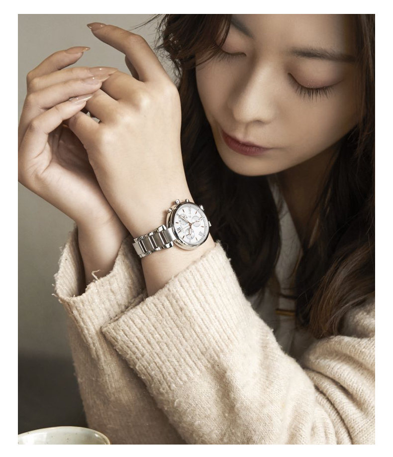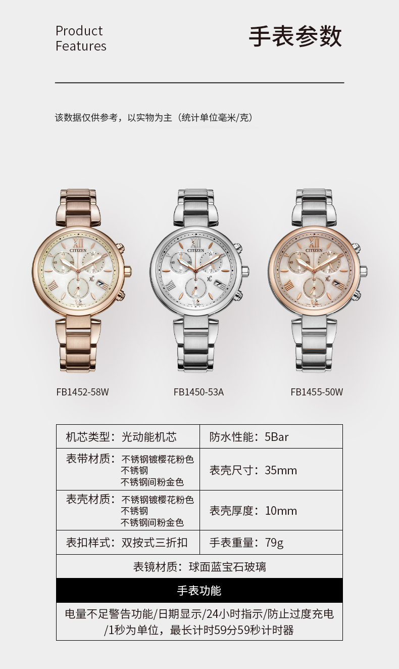 Citizen西铁城 xC系列 光动能手表时尚三眼白盘钢带女表FB1450-53A 白色