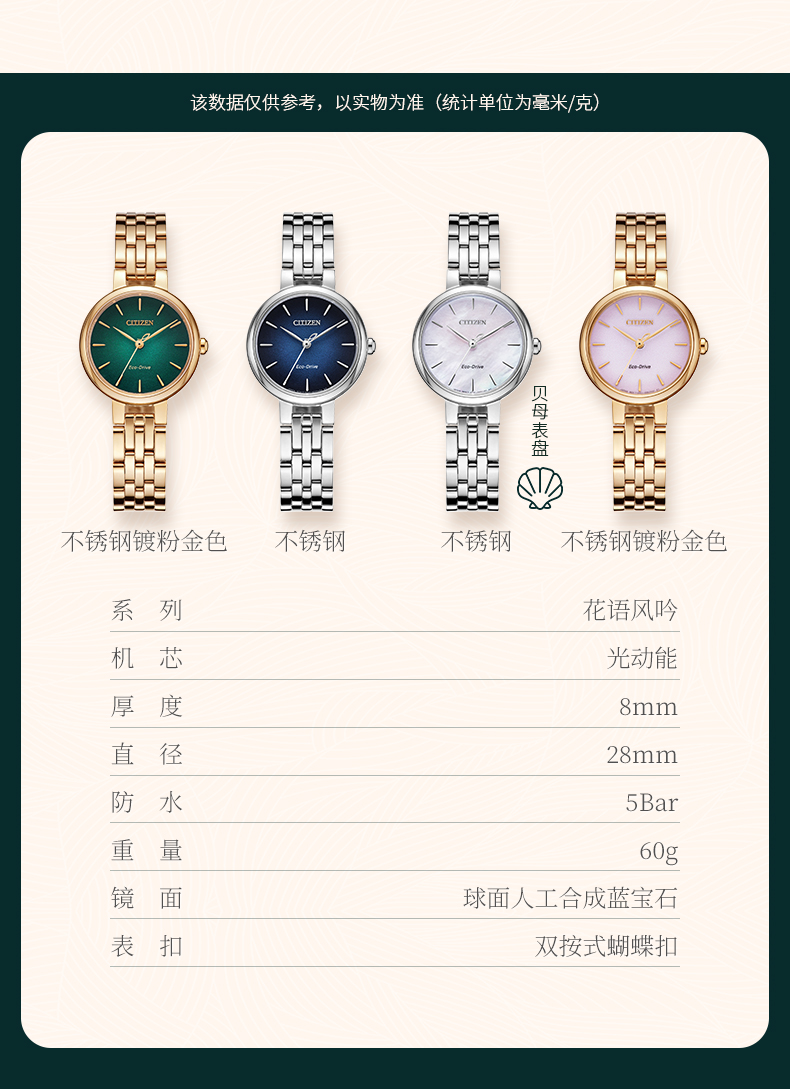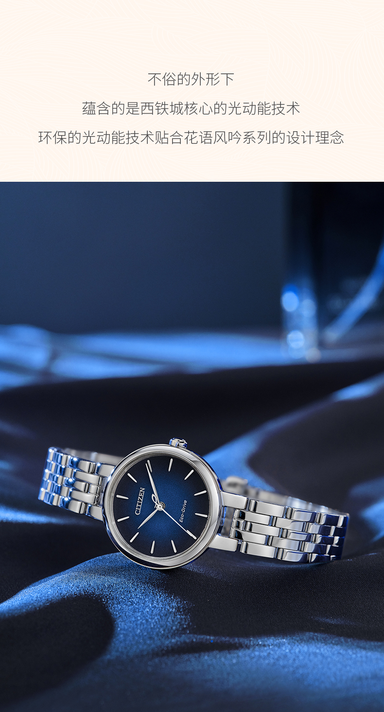 Citizen西铁城 花语风吟系列 光动能手表蓝盘时尚女表EM0990-81L 幻影蓝