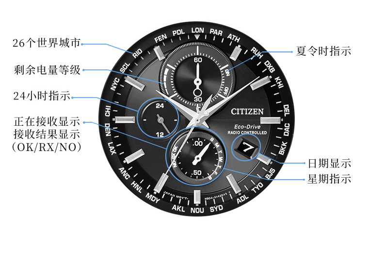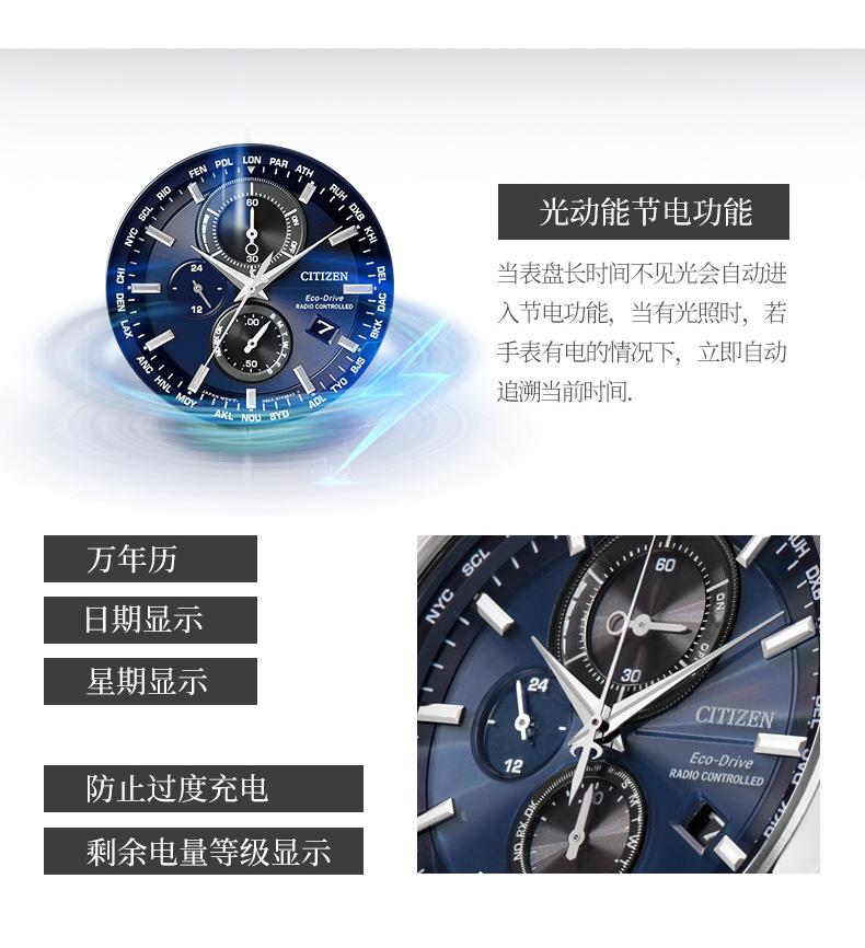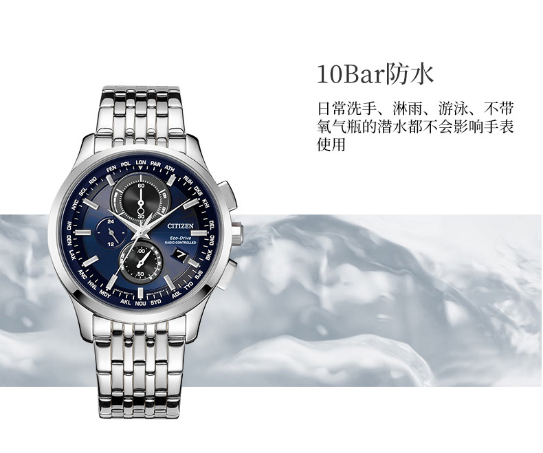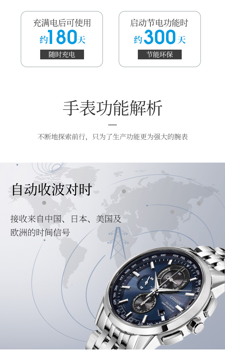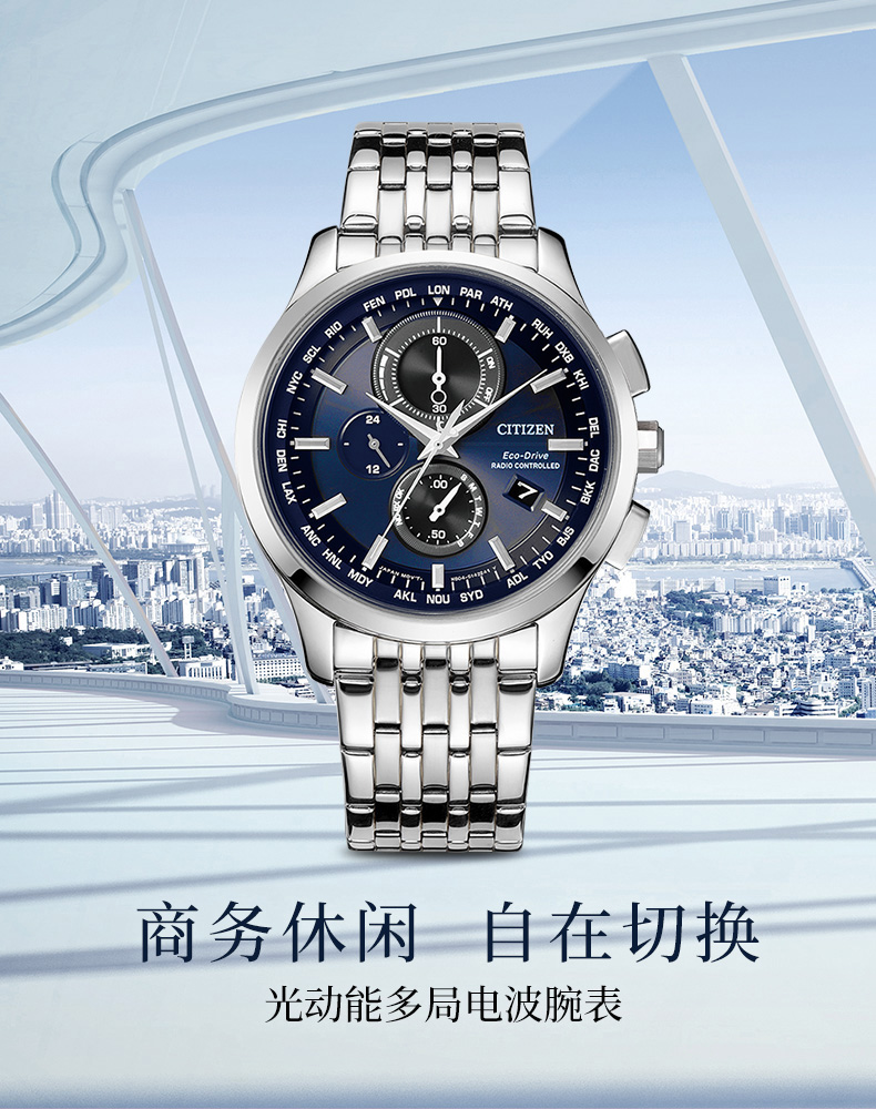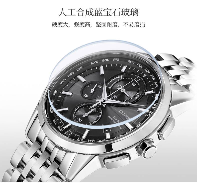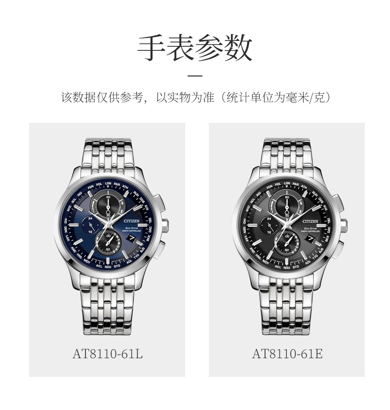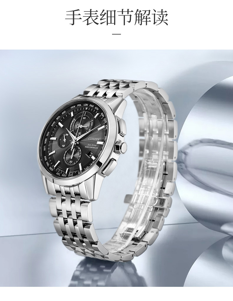 Citizen西铁城 光动能手表黑盘钢带男表 AT8110-61E 黑色