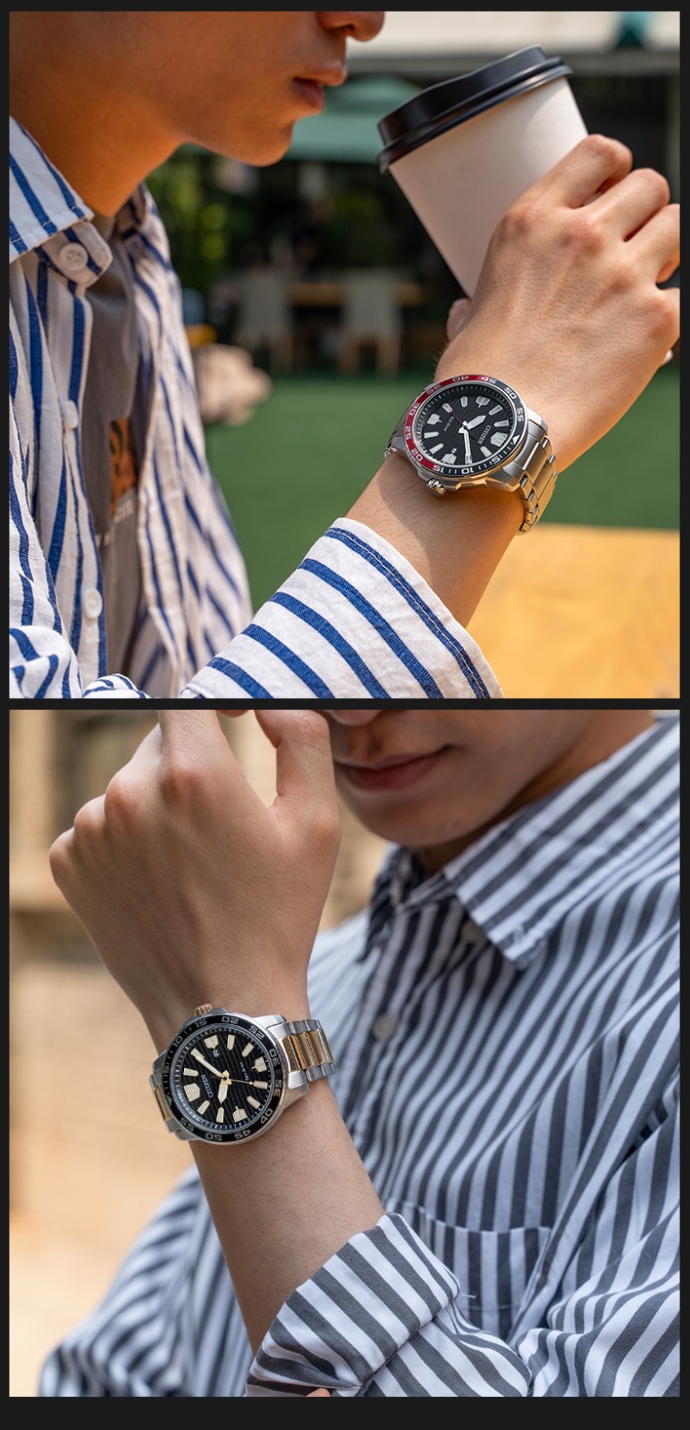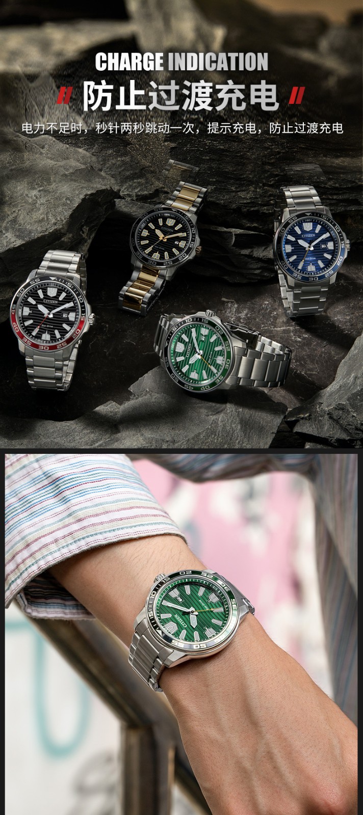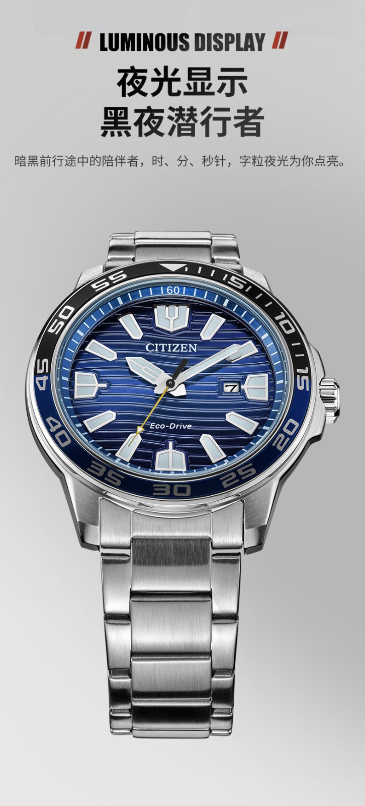 Citizen西铁城 光动能表经典夜光钢带防水水鬼光动能男表AW1524-84E 黑色