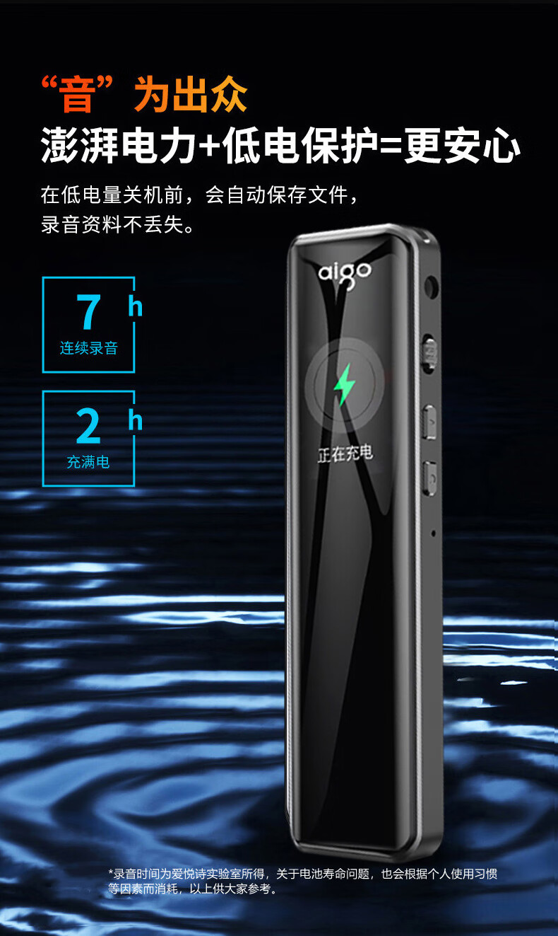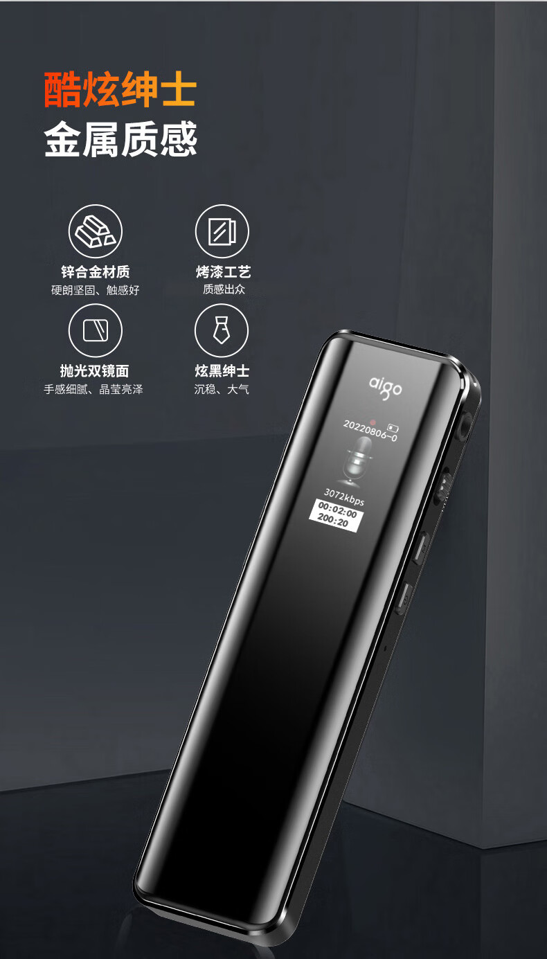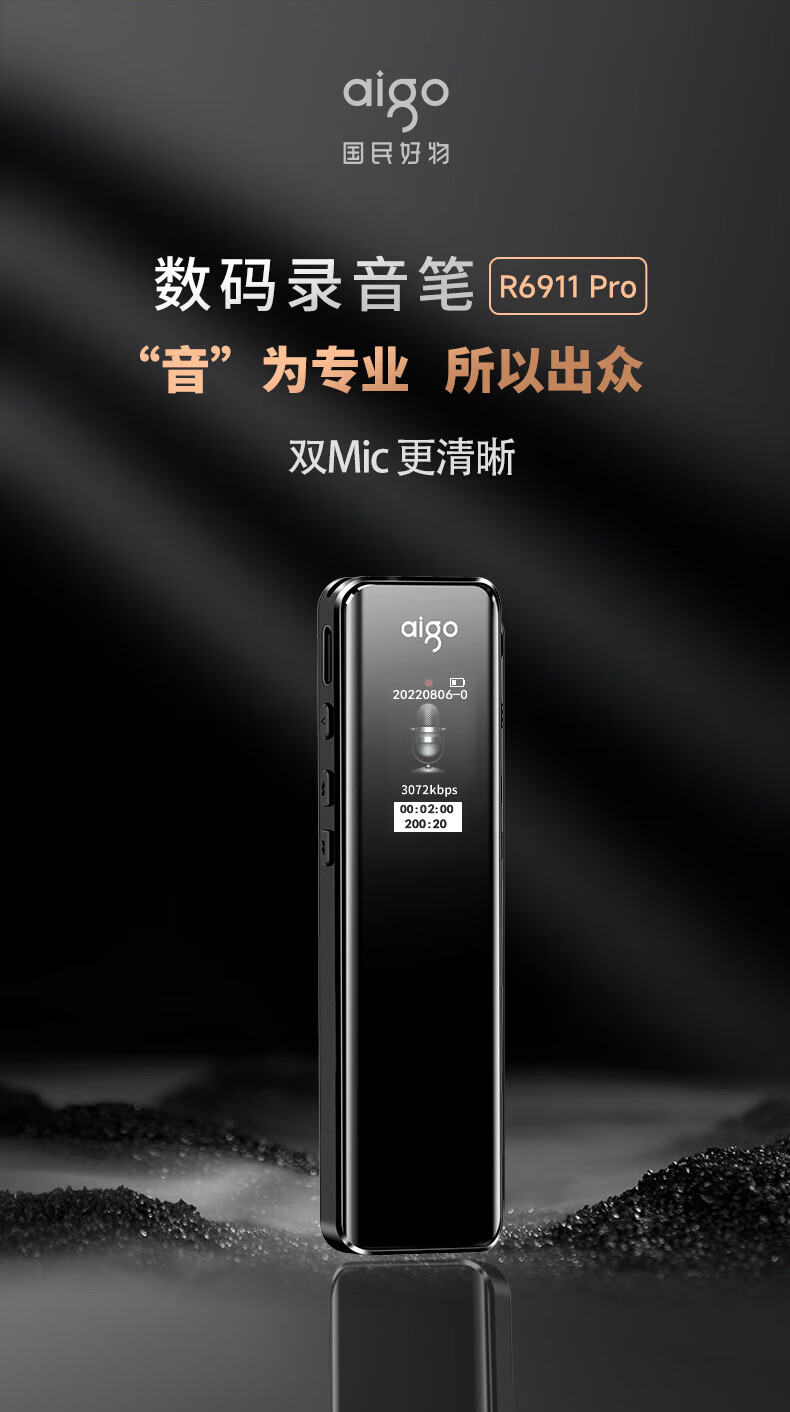 爱国者aigo 16G录音笔R6911pro专业录音器 一键录音设备 黑色