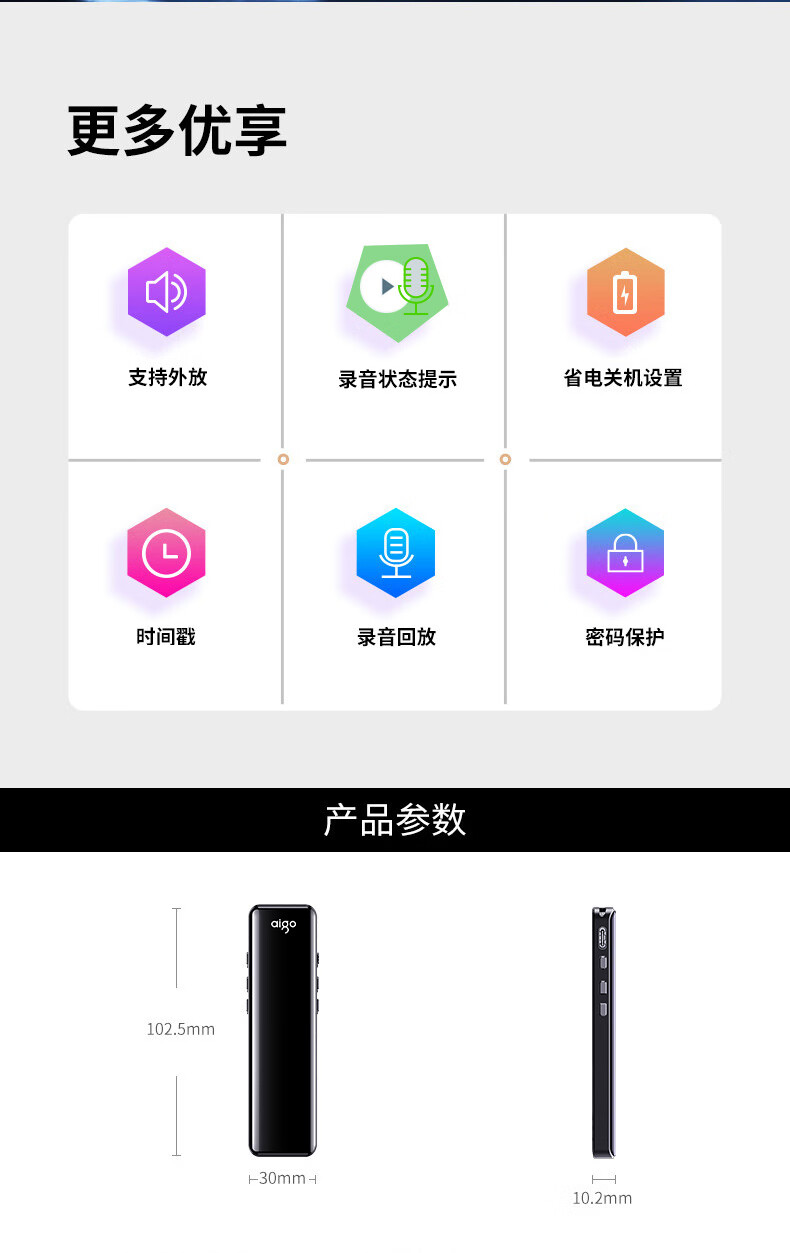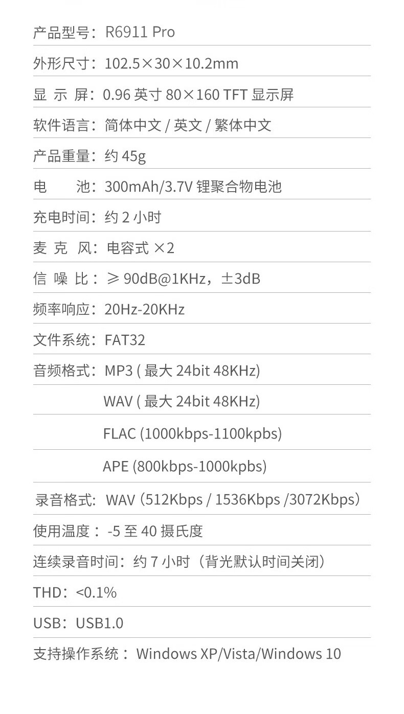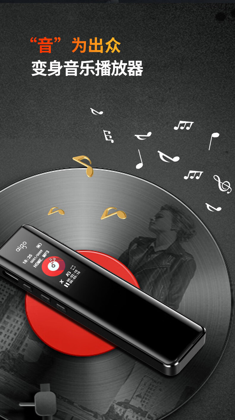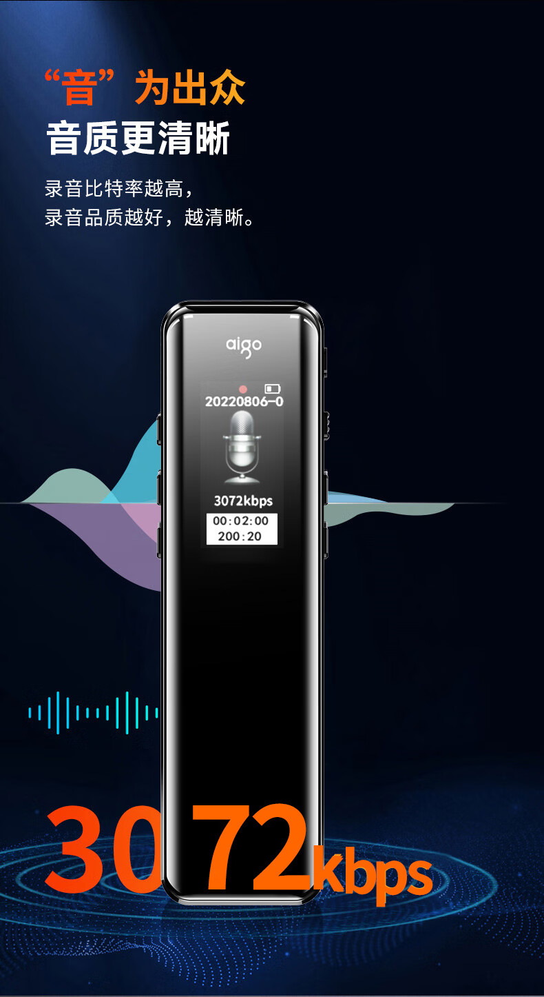 爱国者aigo 16G录音笔R6911pro专业录音器 一键录音设备 黑色