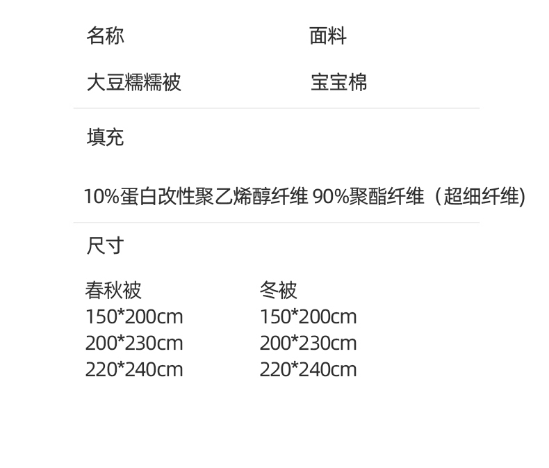 帛享家纺 大豆糯糯被BXQZM-34860单位(条) 暗香 150*200CM
