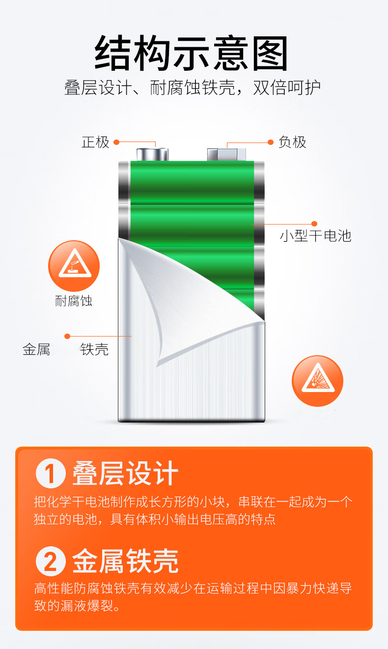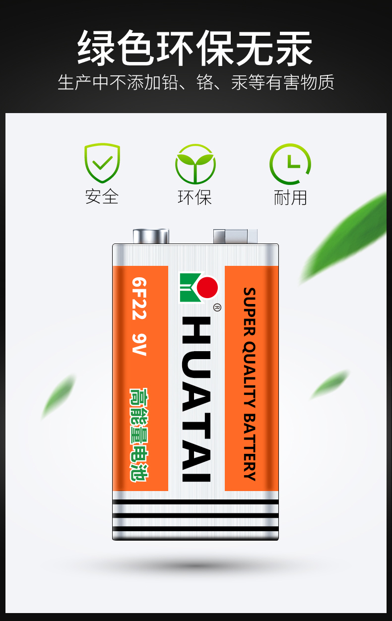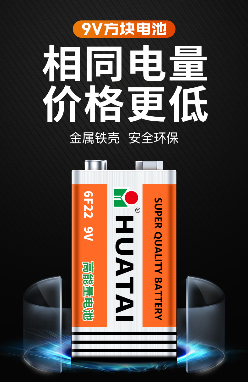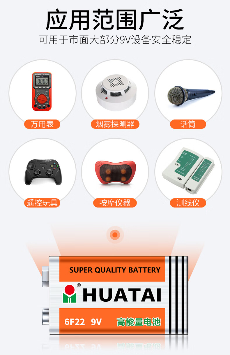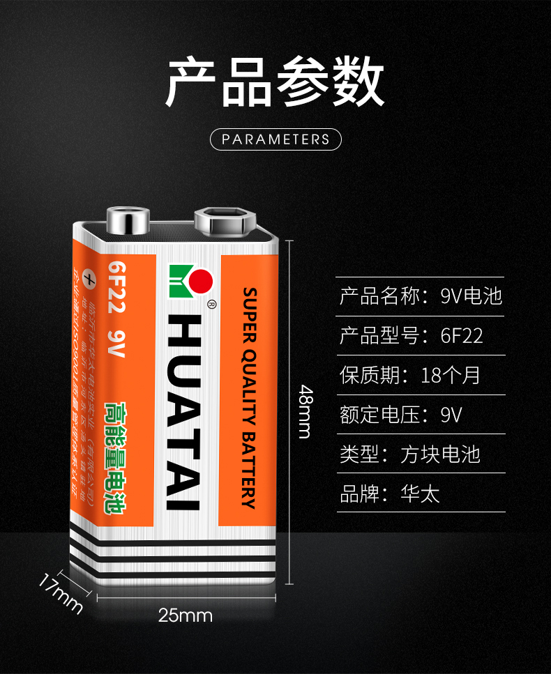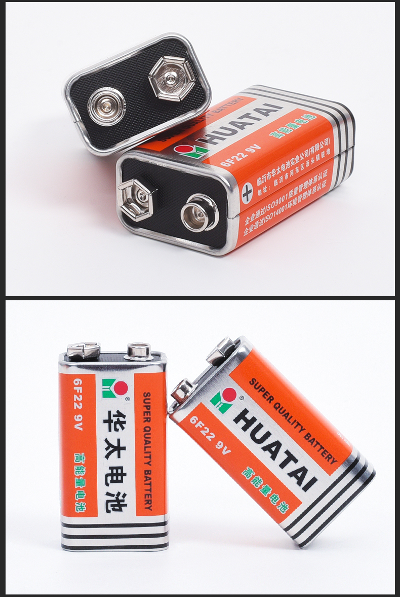 华太 9V碳性电池 6F22/九伏方形碳性电池10粒/盒装 适用:万用表/烟雾探测器/电动玩具/遥控 红色