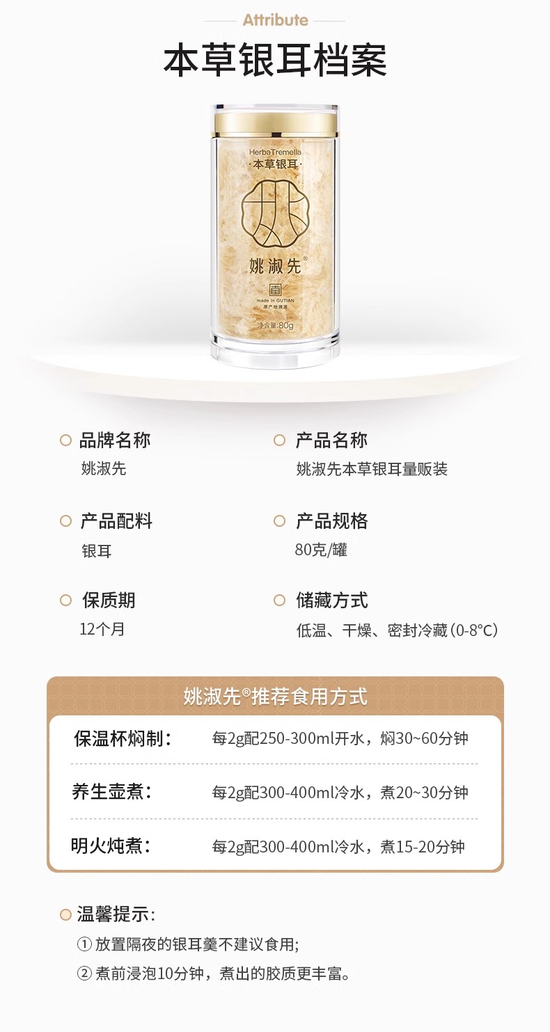 姚淑先本草银耳80g罐装(单位:罐) 自然色