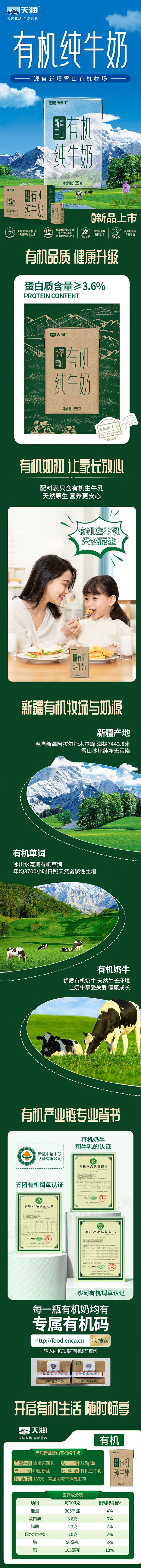 天润新疆雪山有机纯牛奶125ml*20盒礼盒装(单位:箱) 无色
