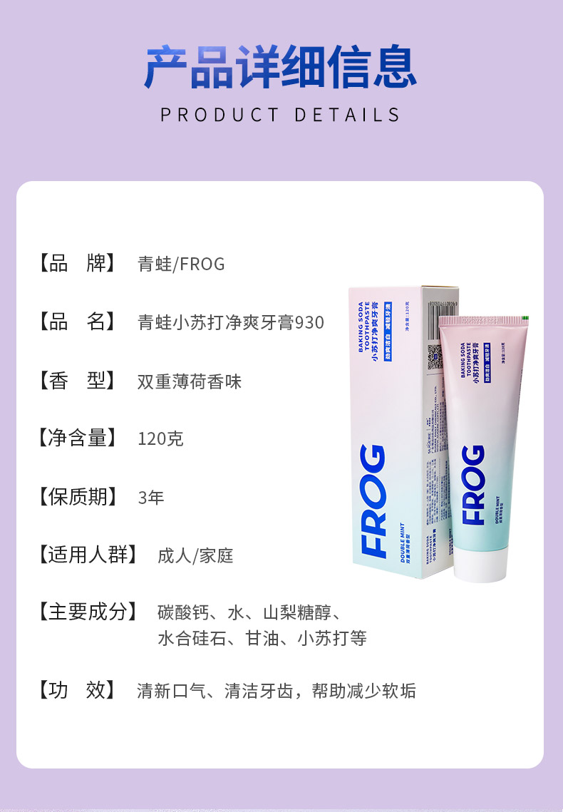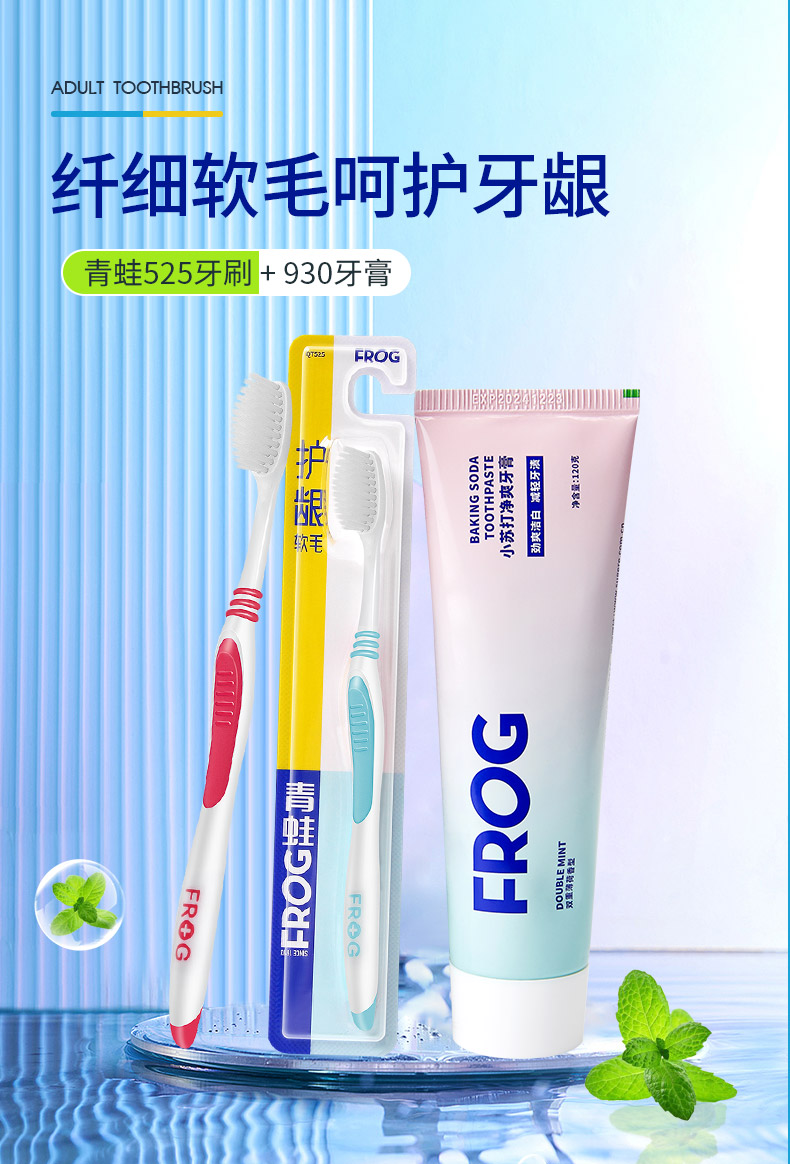 青蛙(FROG)微米小苏打牙膏亮白120g*1支包含青蛙细毛525系列牙刷1支 颜色随机(单位:组) 混色