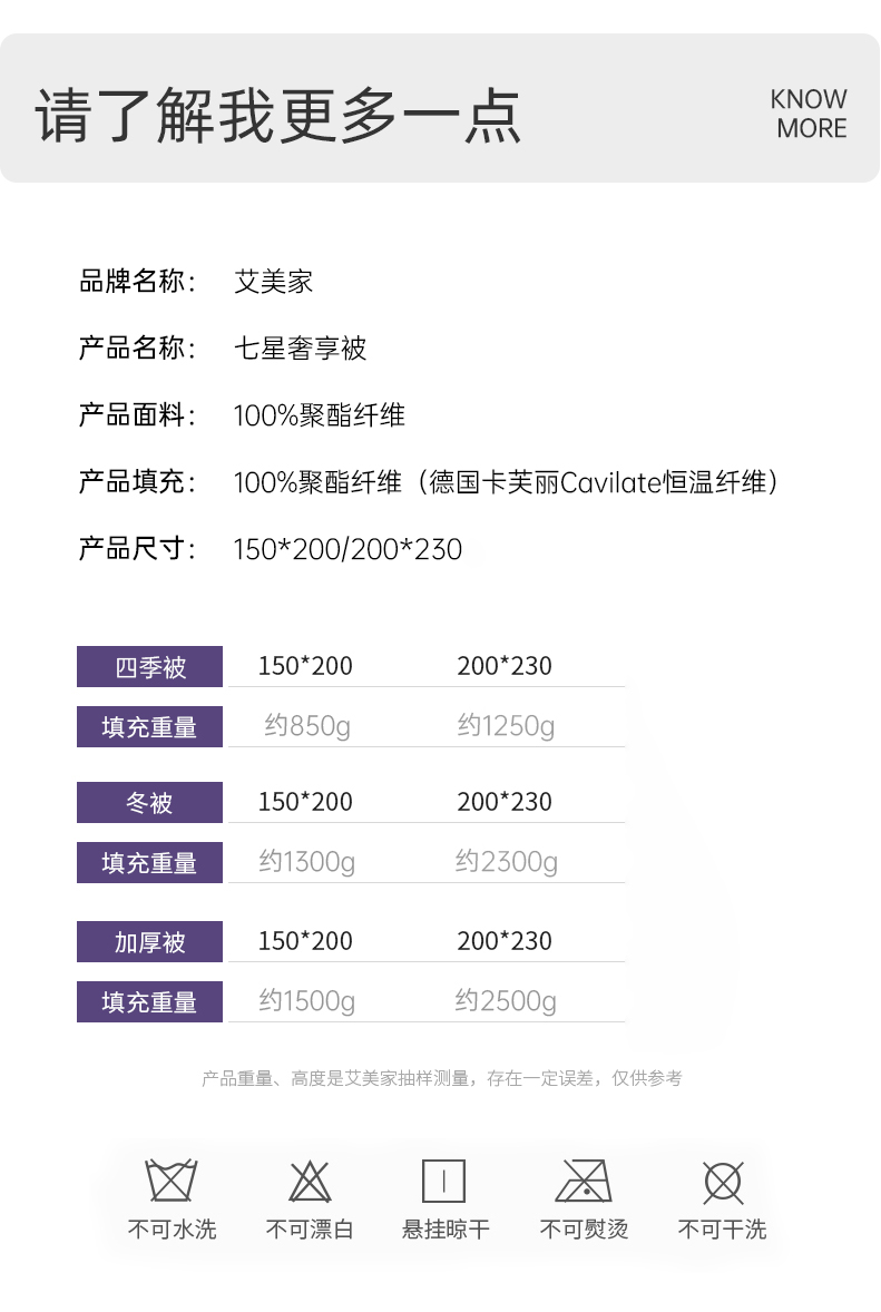 艾美家 七星奢享被-冬被 150*200cm 紫色 约1300g (单位:条) 紫色
