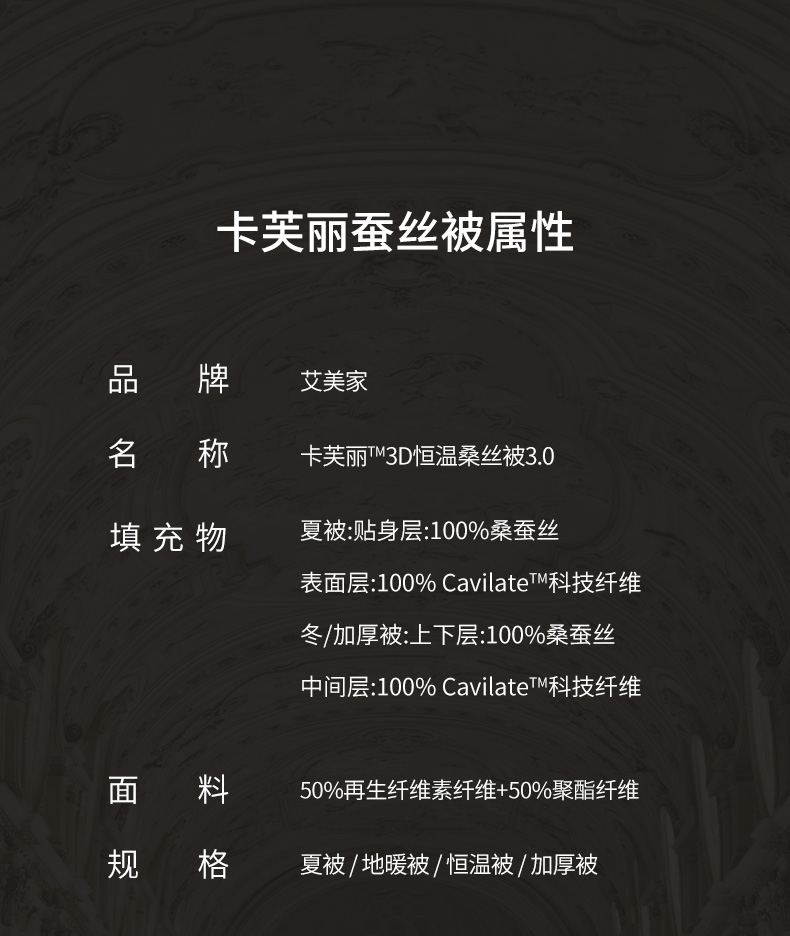 艾美家 卡芙丽恒温桑丝-冬被 150*200cm 约4.7斤(单位:条) 白色