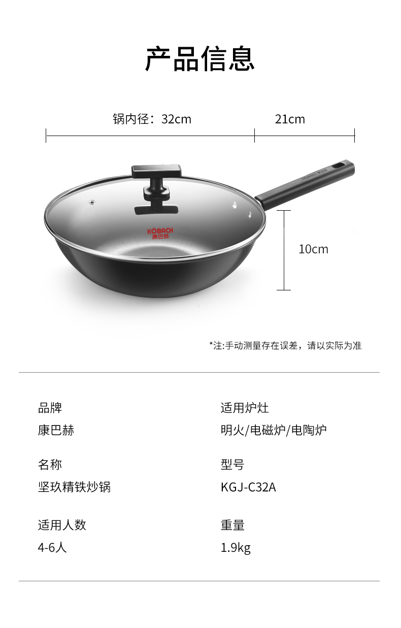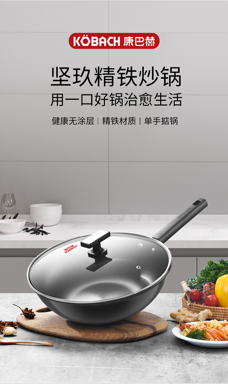 康巴赫坚玖精铁炒锅-套装32cm KGJ-C32A 单位:个 黑色