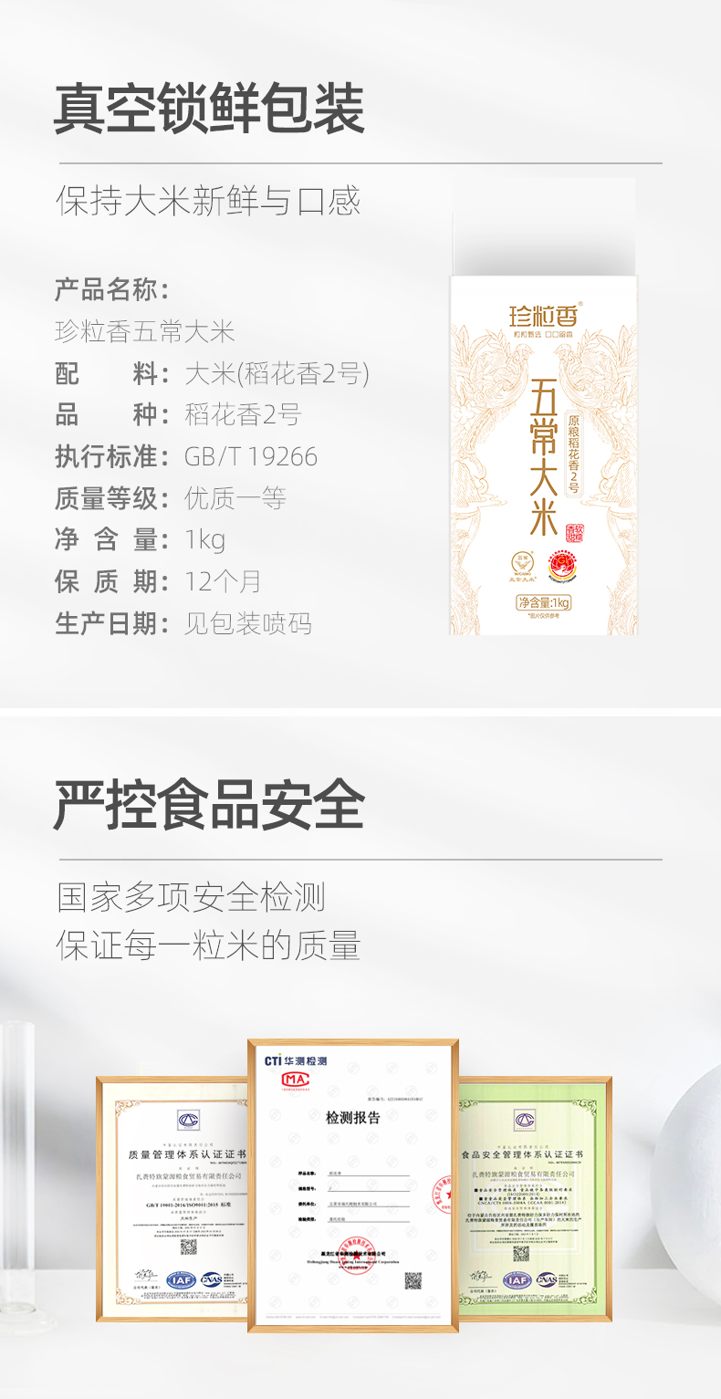 珍粒香五常大米1KG 单位:包 钢琴白