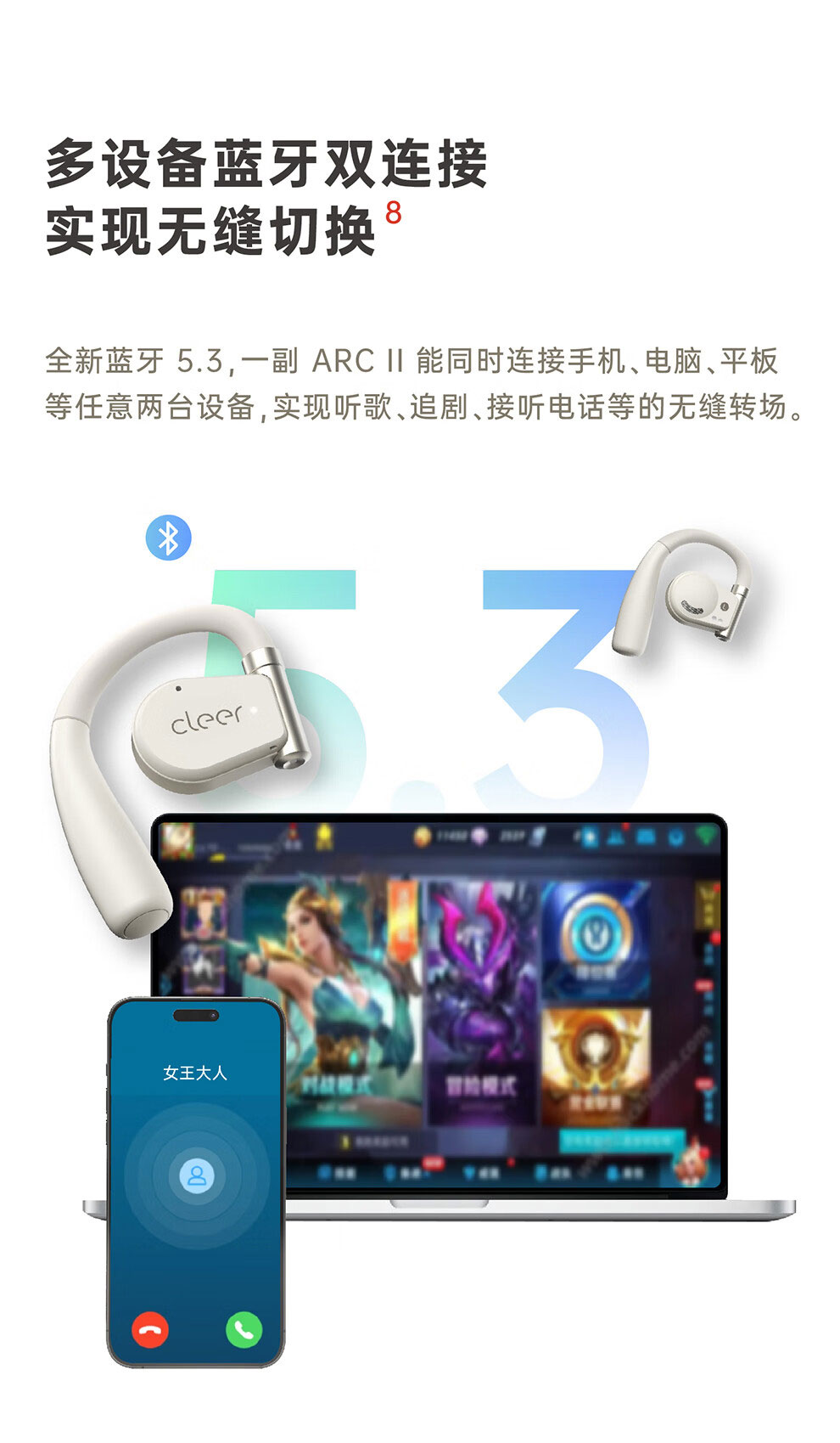 cleer ARC II 音乐版 开放式智能真无线蓝牙耳机 单位:个 薄荷绿