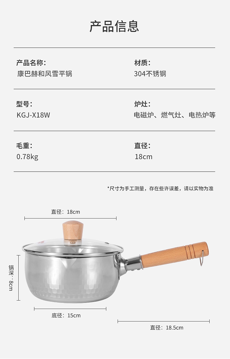 康巴赫 KGJ-X18W 18cm 和风雪平锅 不锈钢色(单位:套)