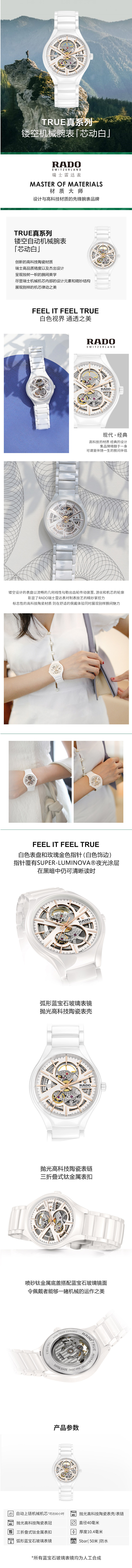 RADO雷达 真系列陶瓷开芯镂空机械手表男女腕表 R27106922 单位:块 白色
