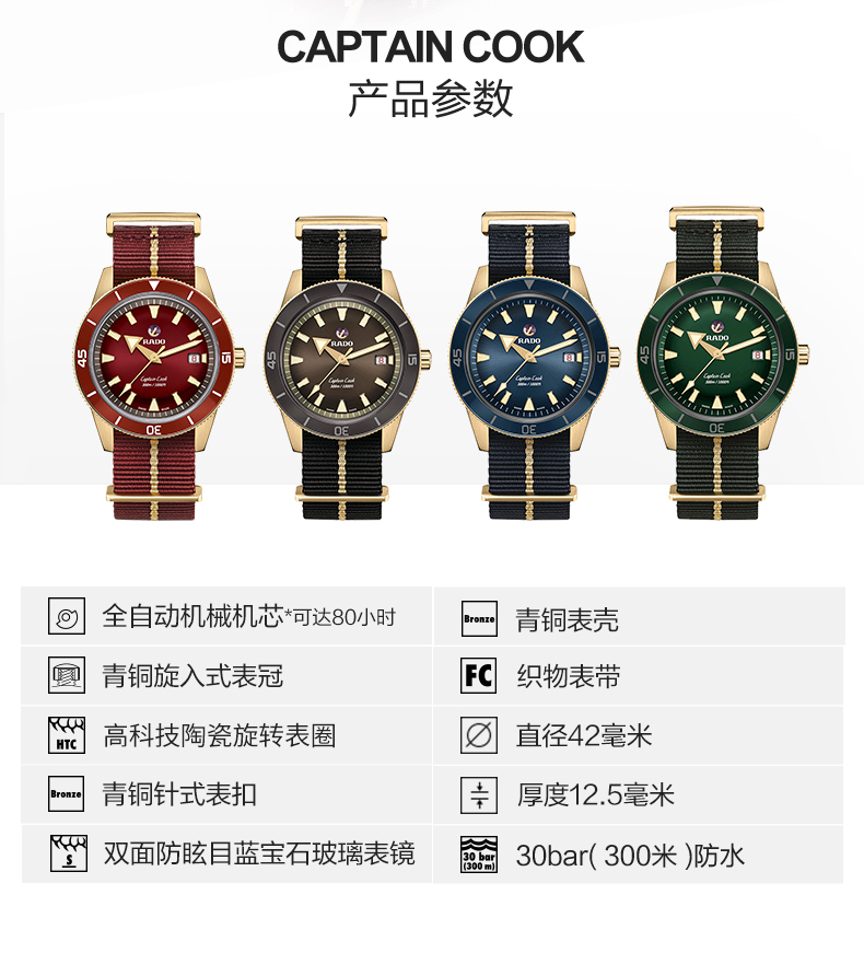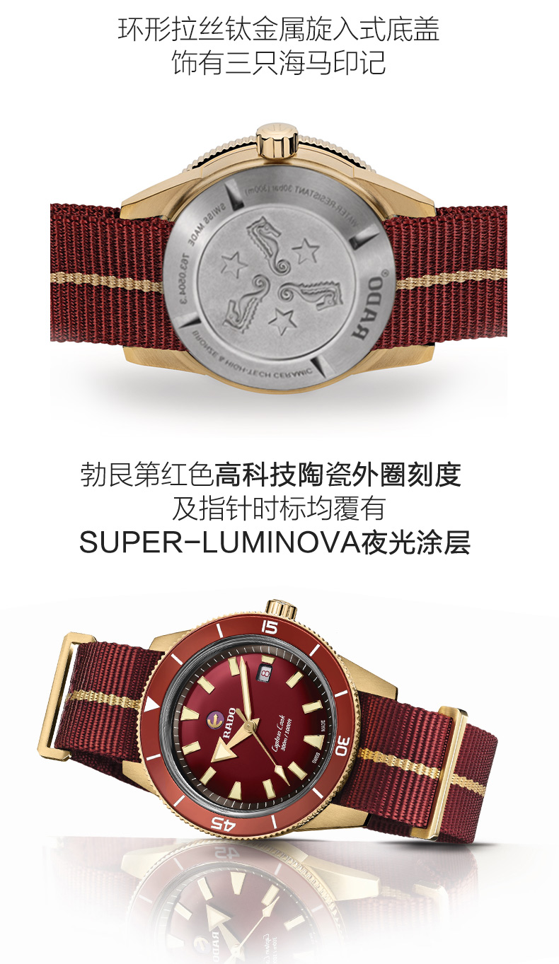RADO雷达 库克船长系列红库克勃艮第红青铜机械男士腕表 R32504407 单位:块 红色