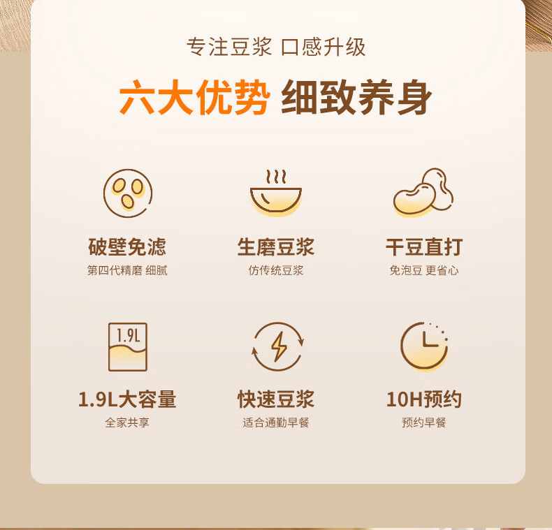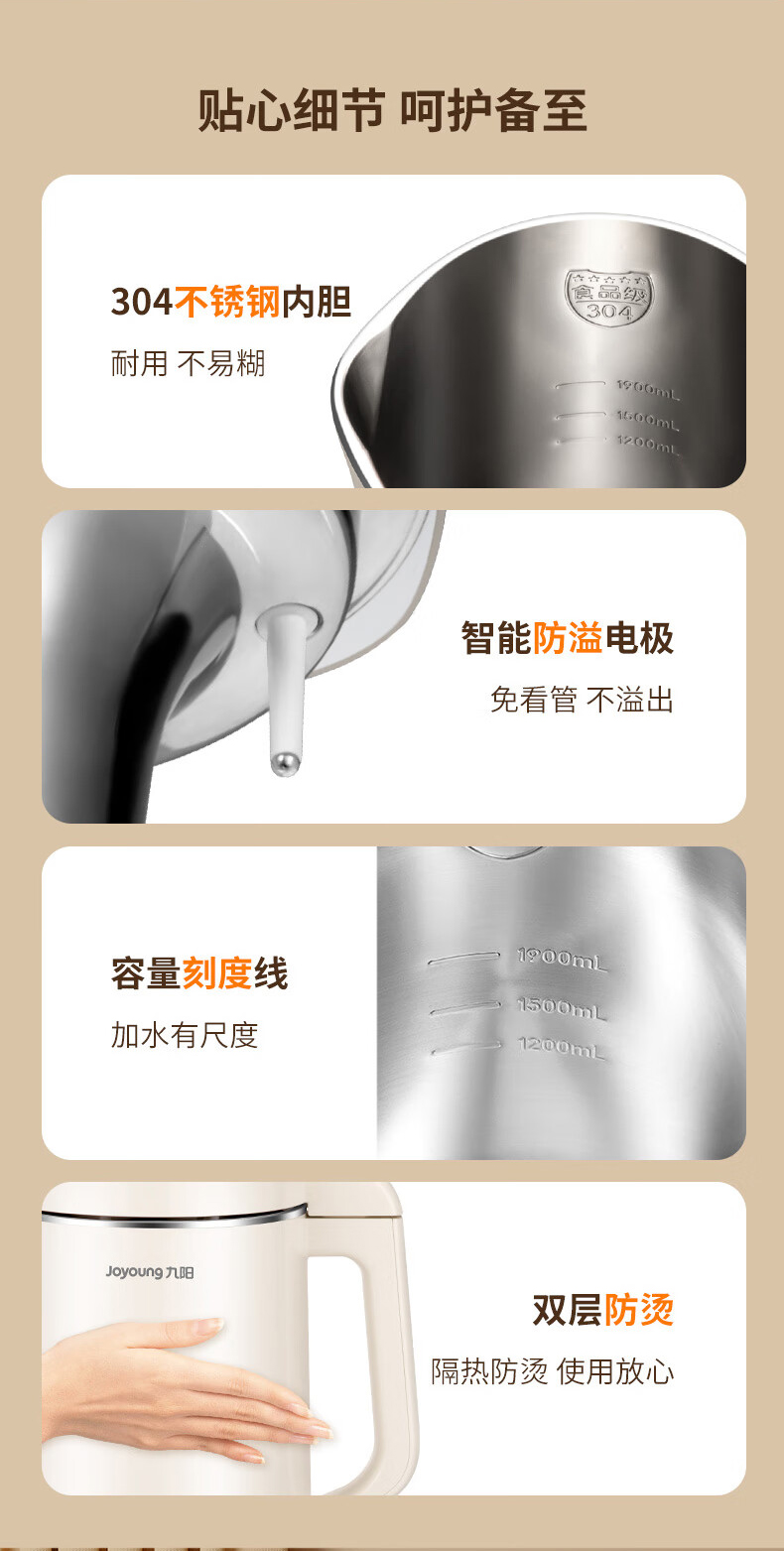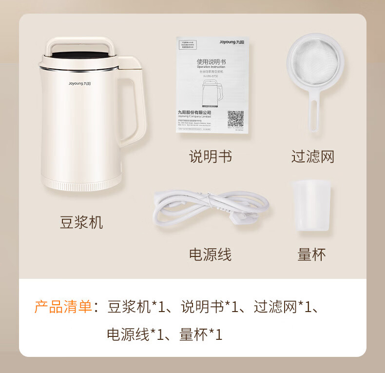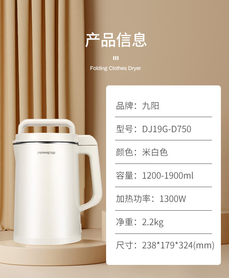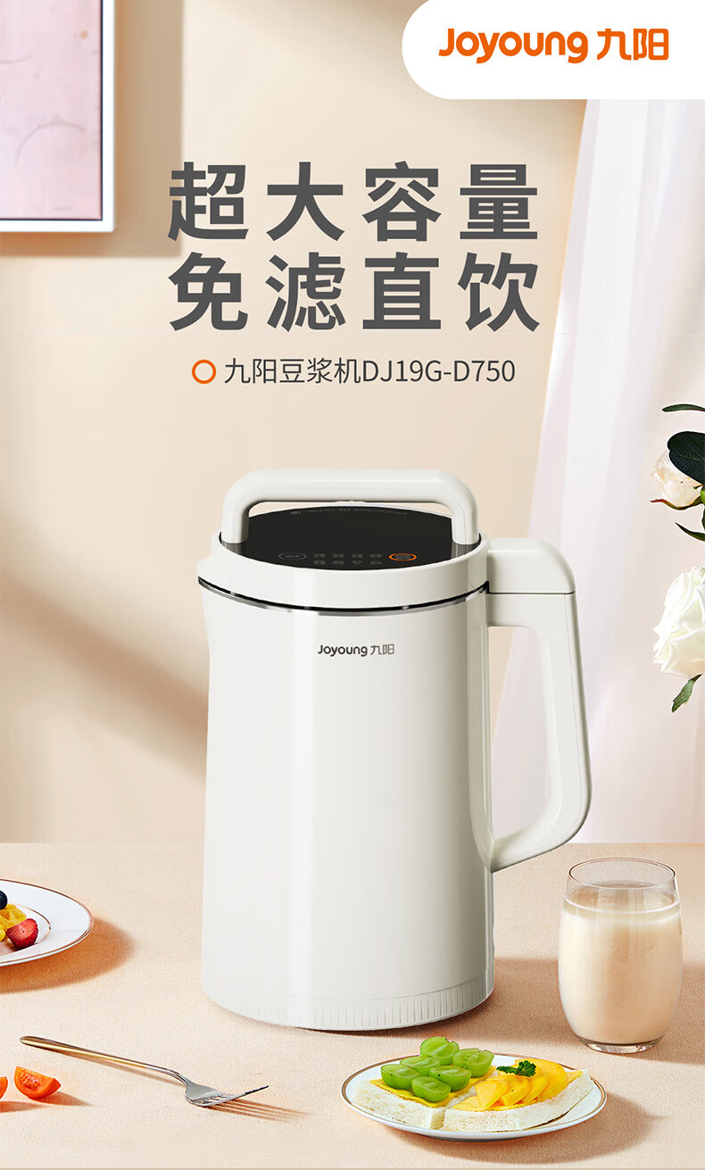 九阳(Joyoung)DJ19G-D750豆浆机免过滤1.9L可预约(单位:台) 象牙色