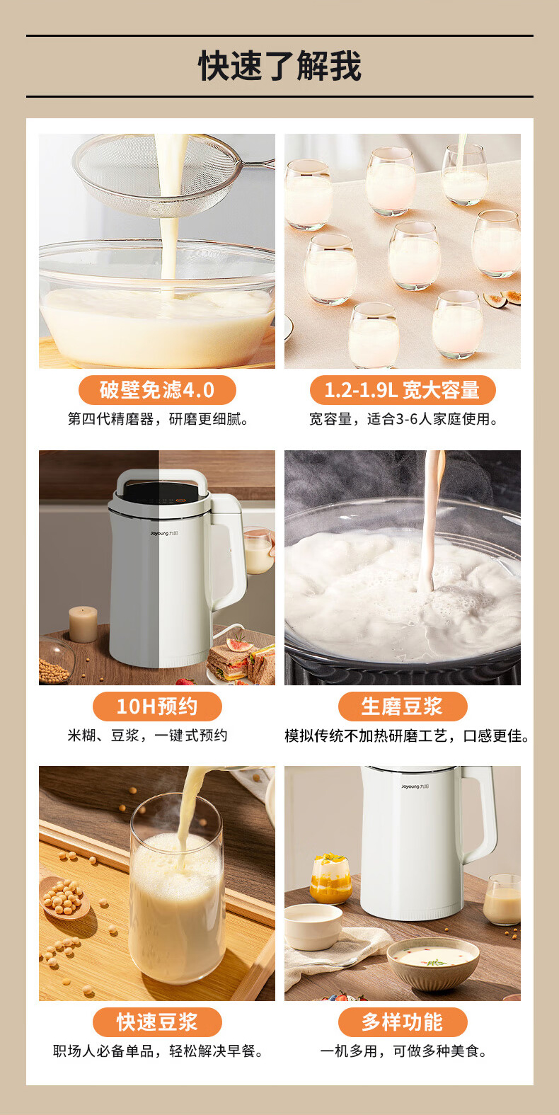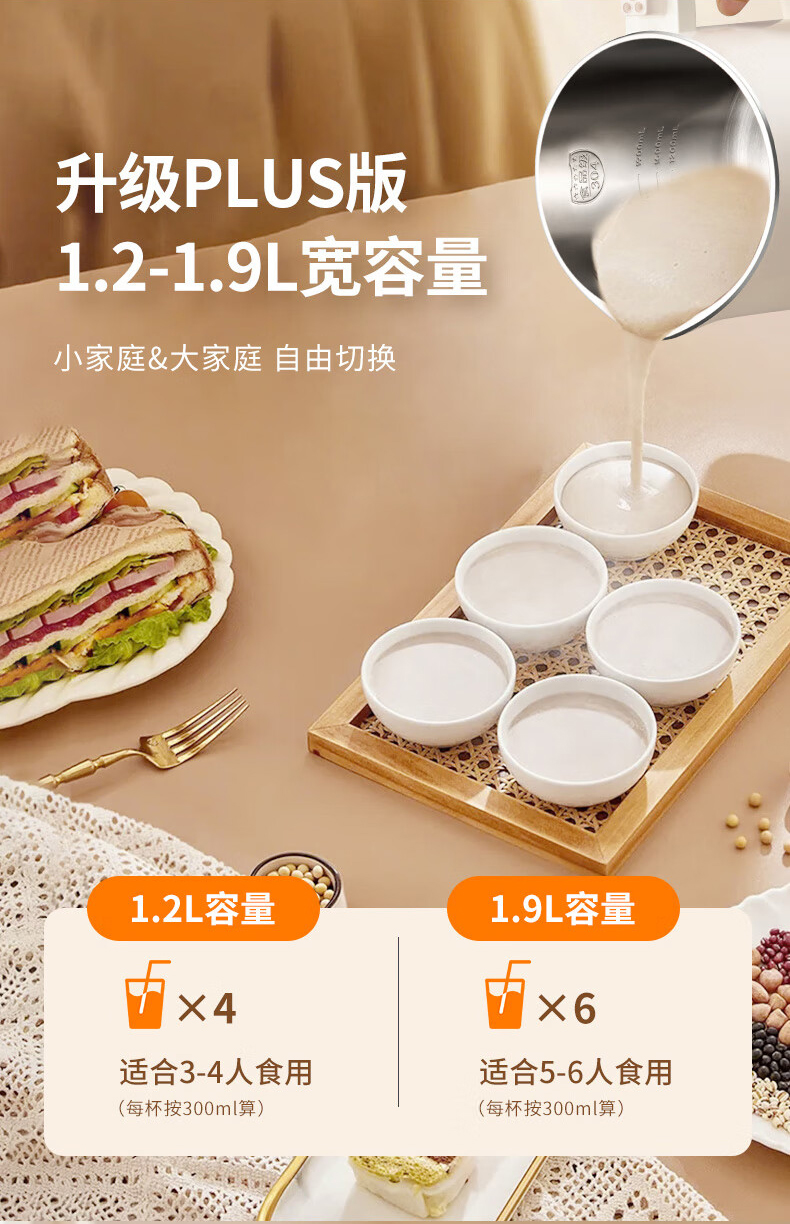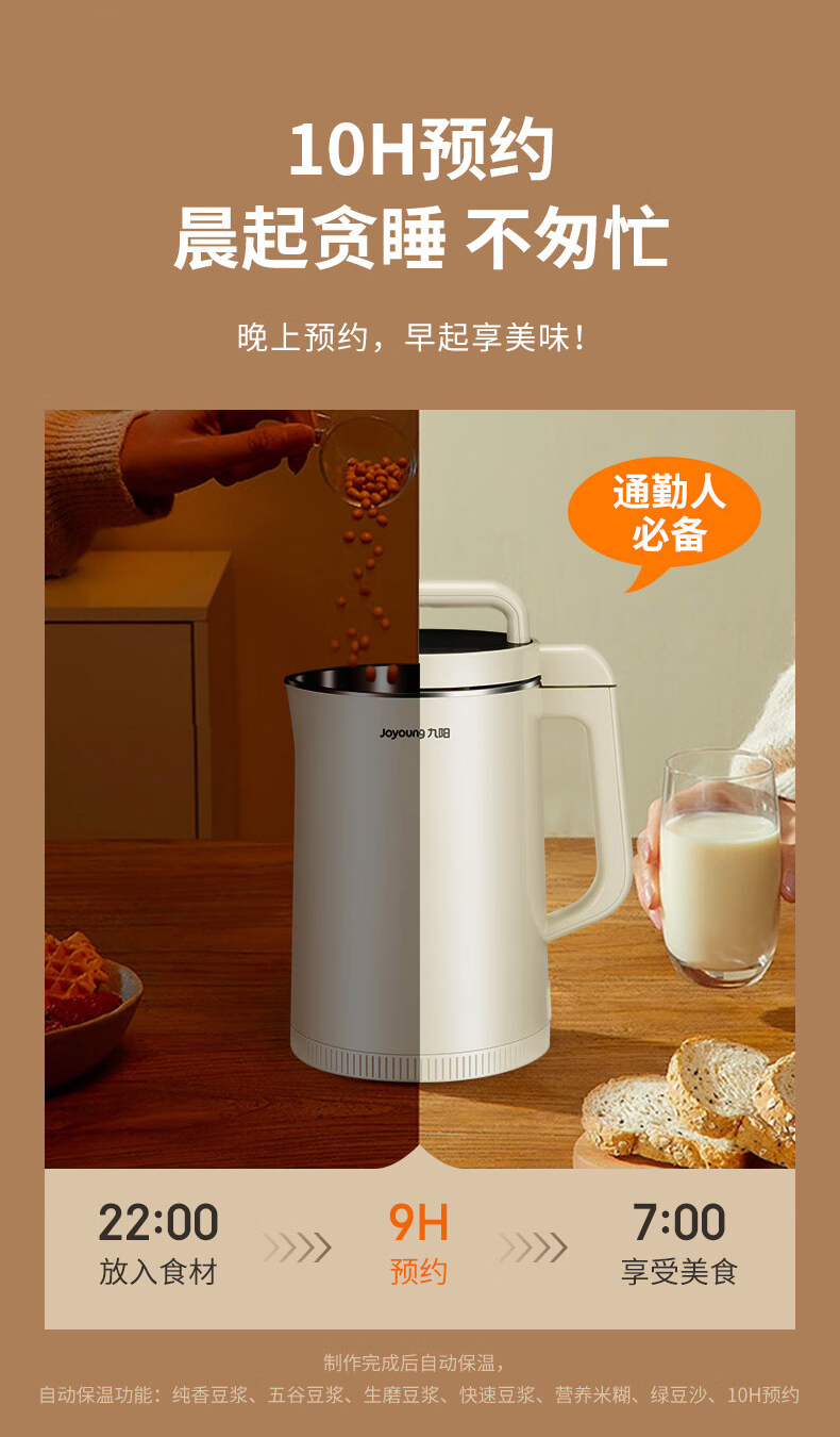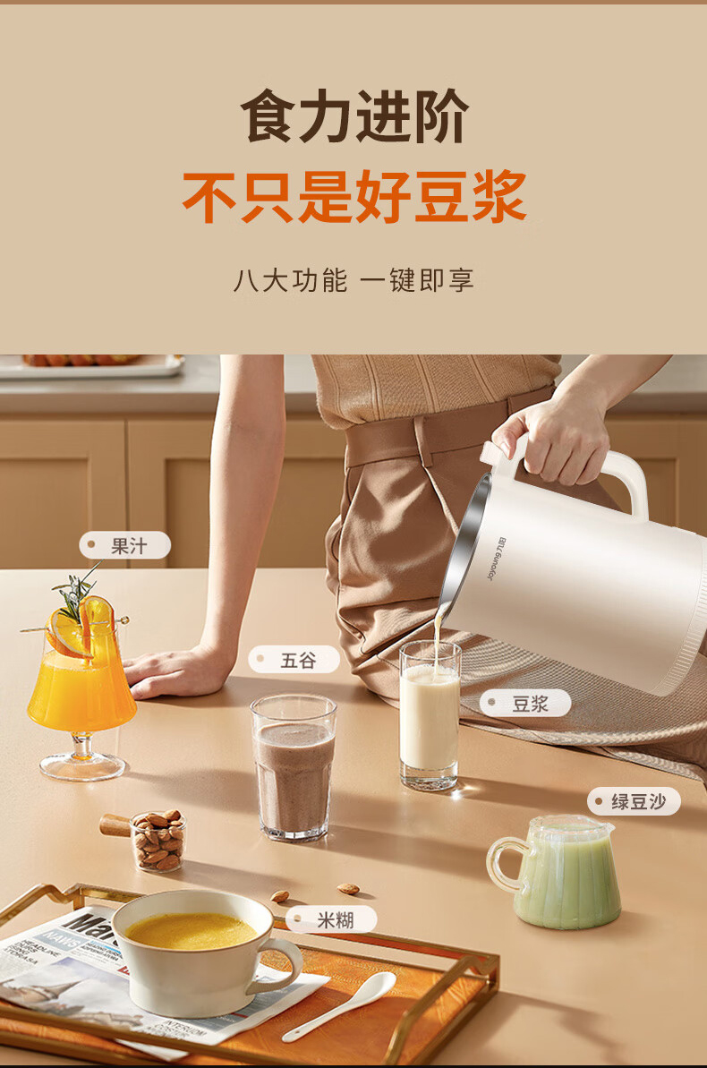 九阳(Joyoung)DJ19G-D750豆浆机免过滤1.9L可预约(单位:台) 象牙色
