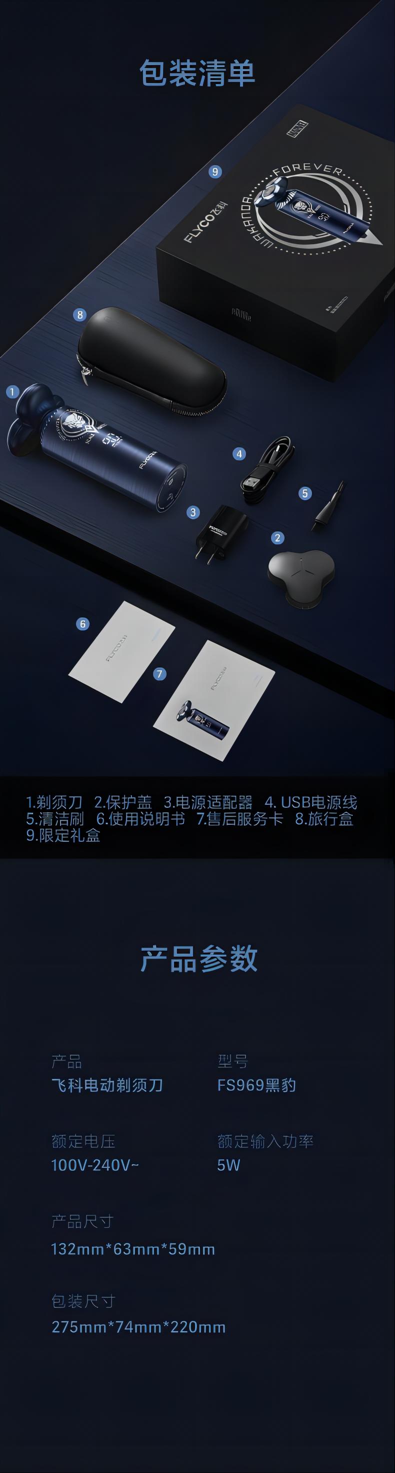 飞科(FLYCO)FS969男士智能剃须刀刮胡刀须刨 单位:个 漫威黑豹IP联名款