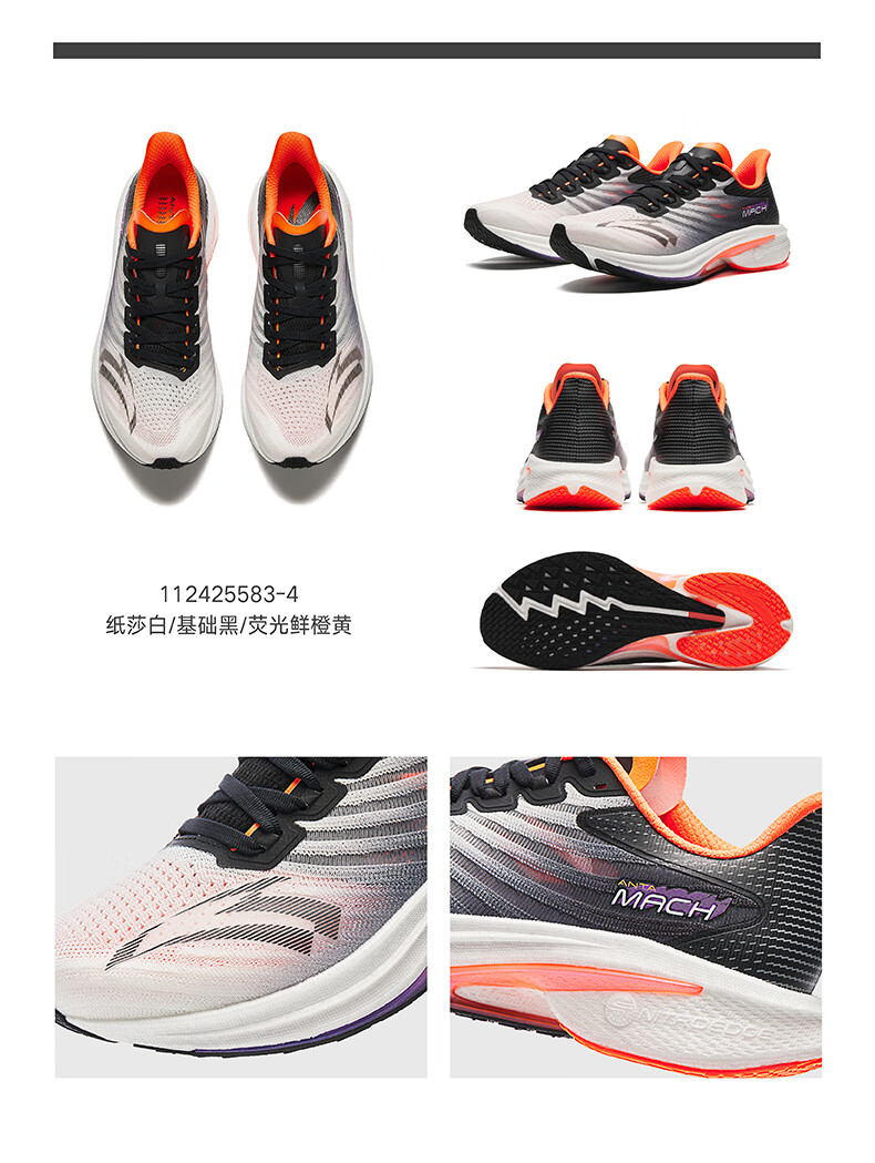 安踏 男跑步鞋 112425583-4(单位:双) 纸莎白/基础黑/鲜橙黄