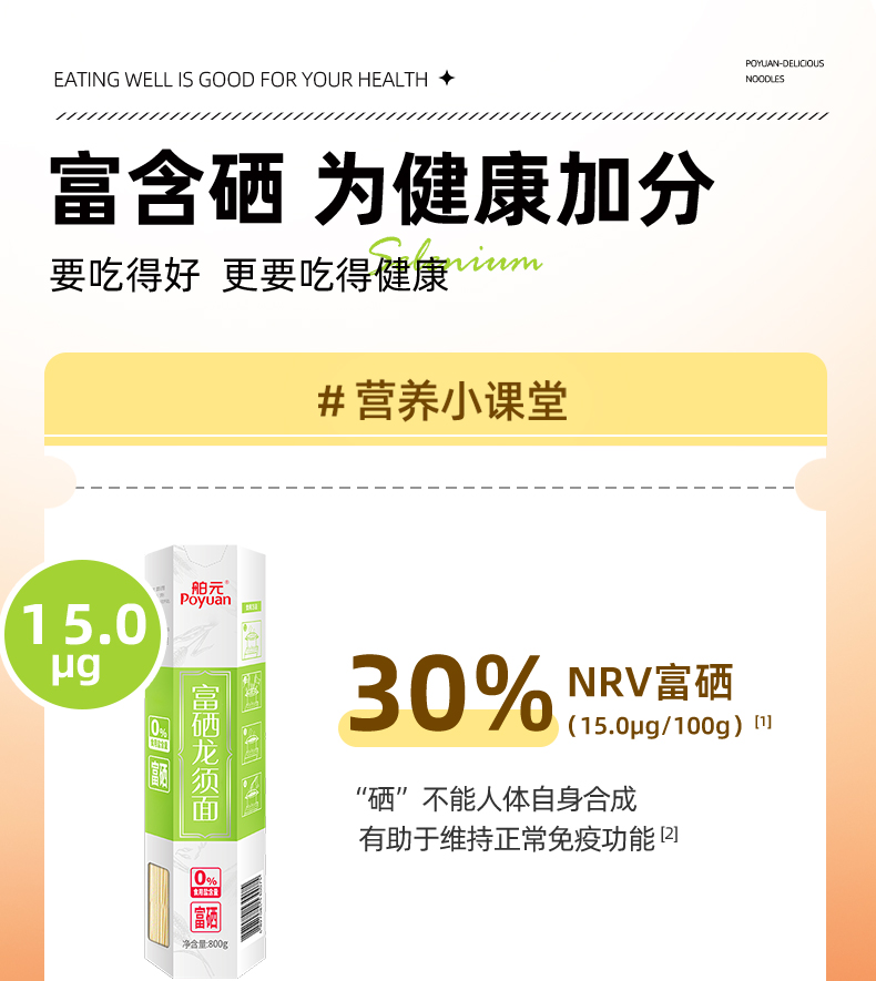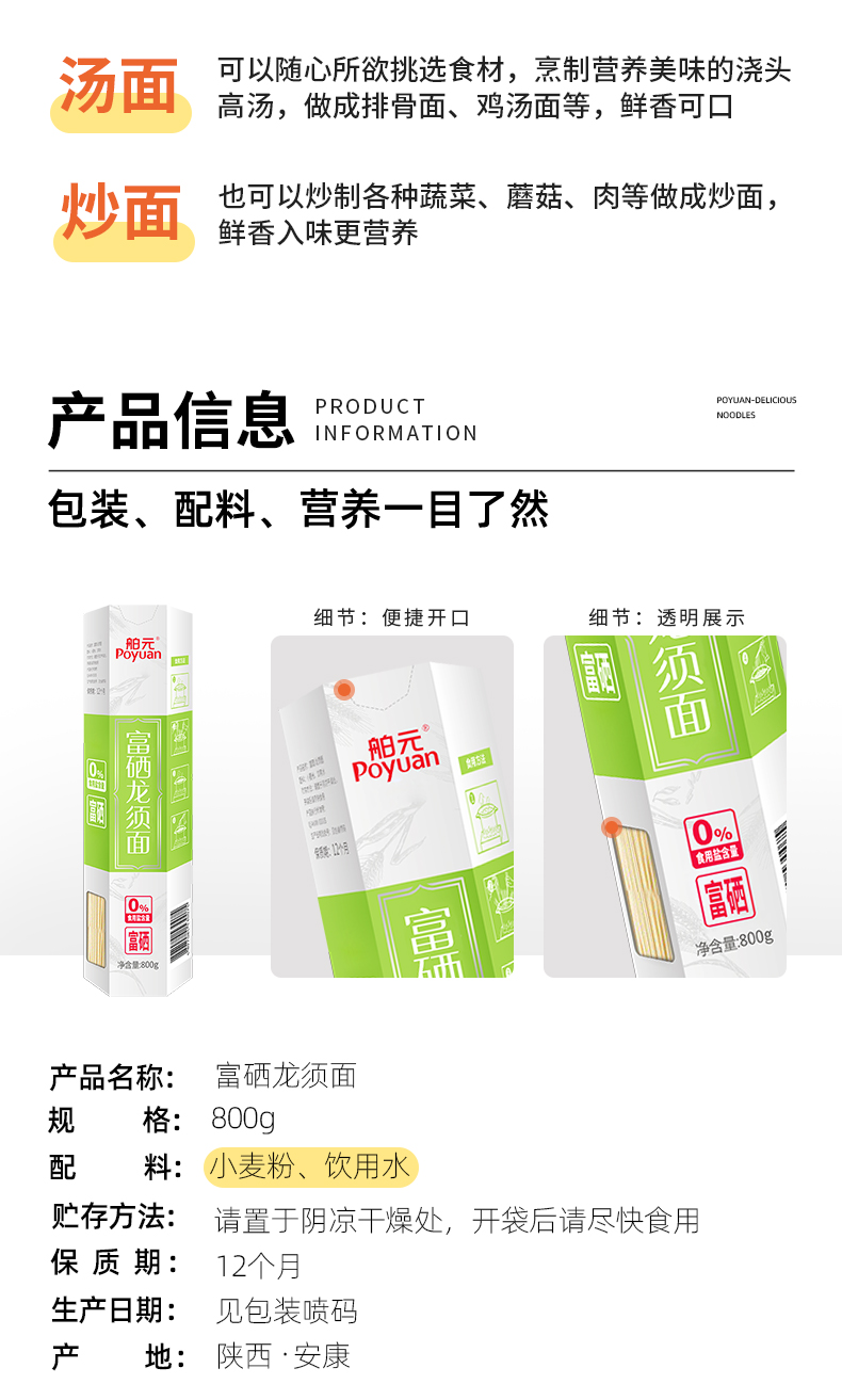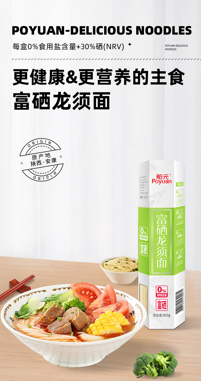 舶元(Poyuan)陕西富硒陕味龙须面条细面营养猪脚面早餐速食拌面 富硒龙须面800g*2 单位:盒 清新色
