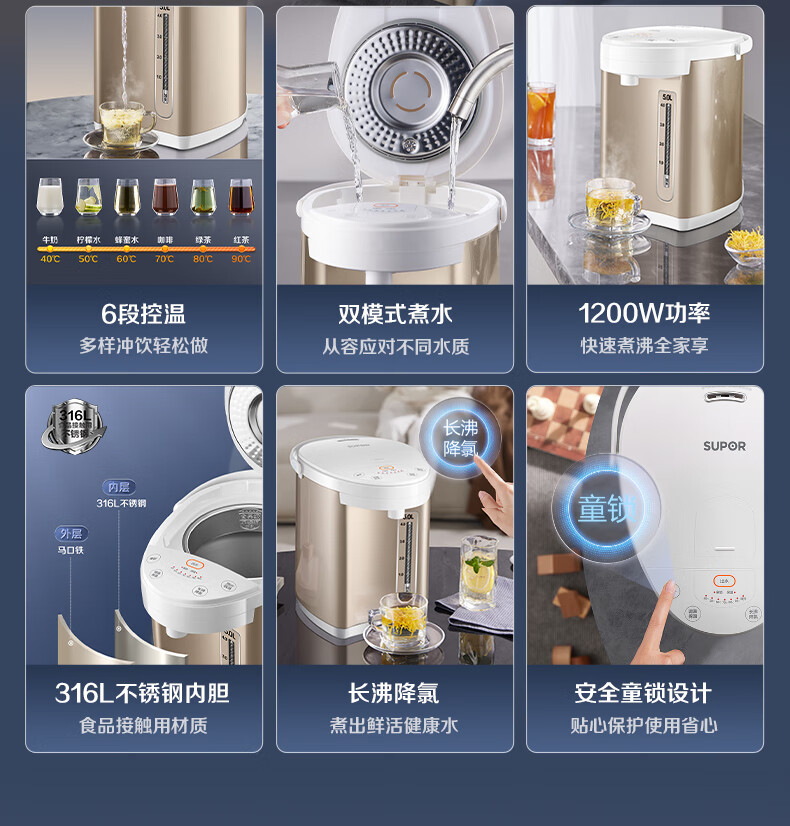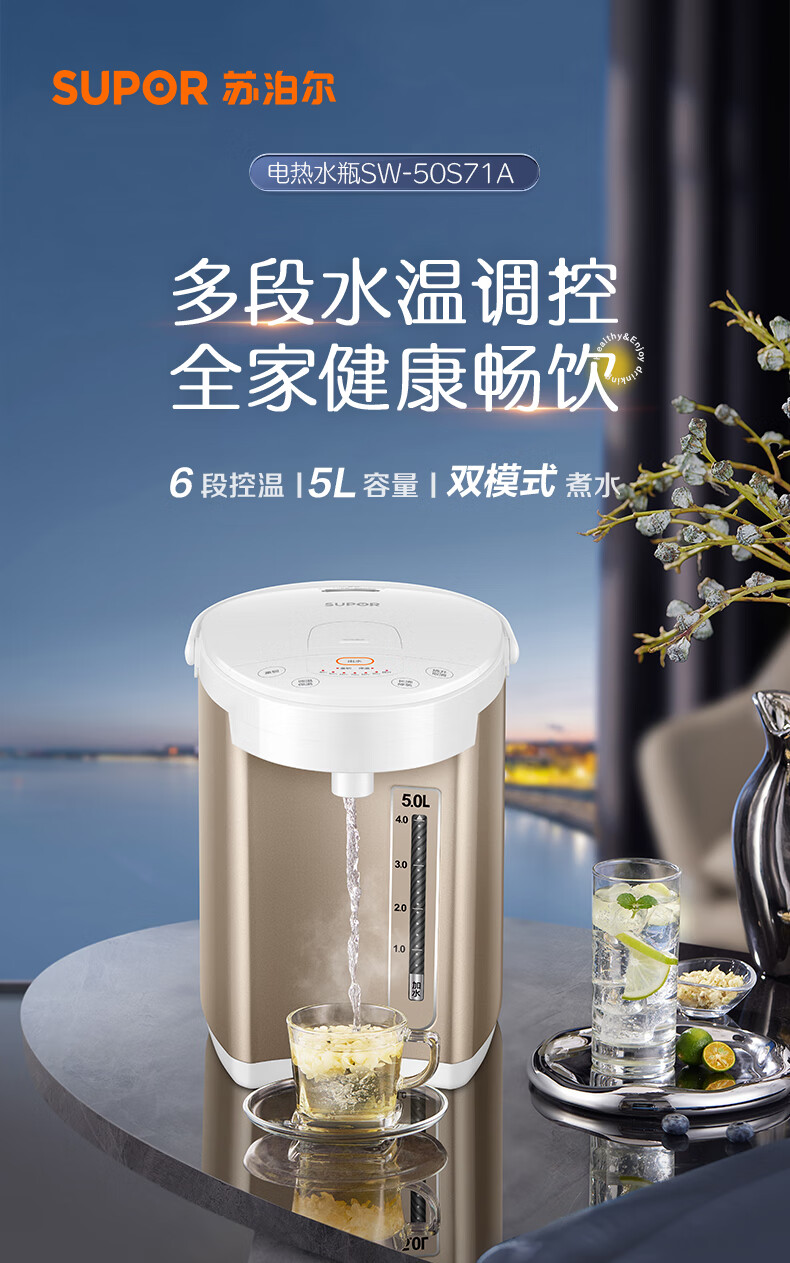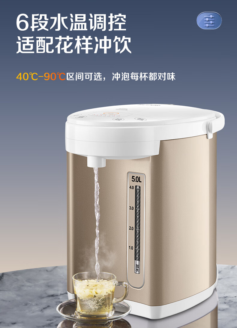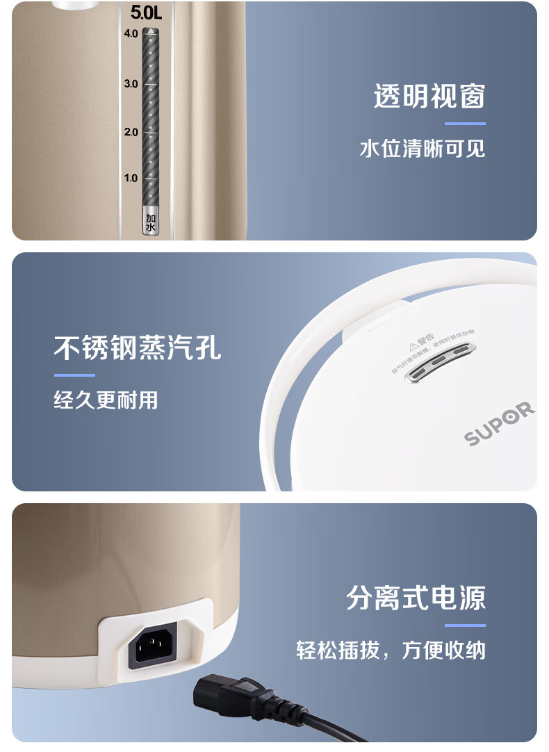 苏泊尔(SUPOR)电热水瓶家用5升容量316L电水壶 6段温控SW-50S71A/台 金色