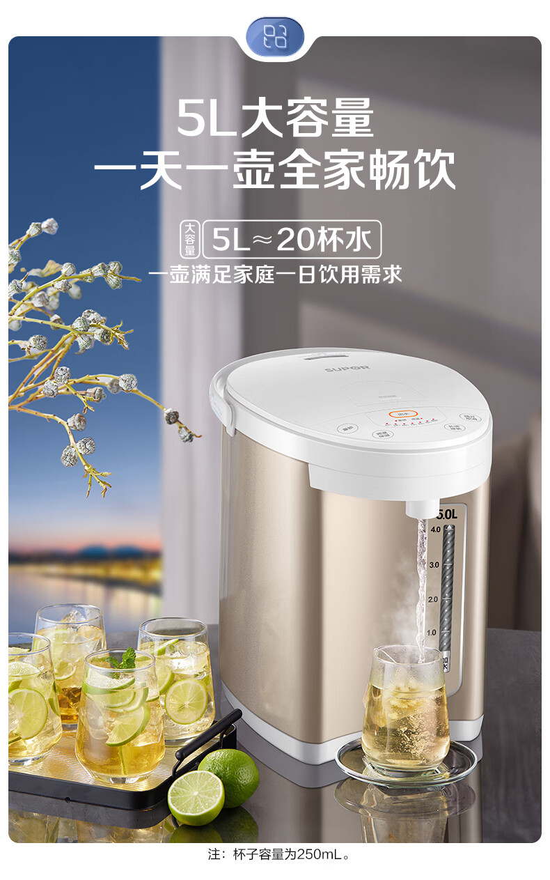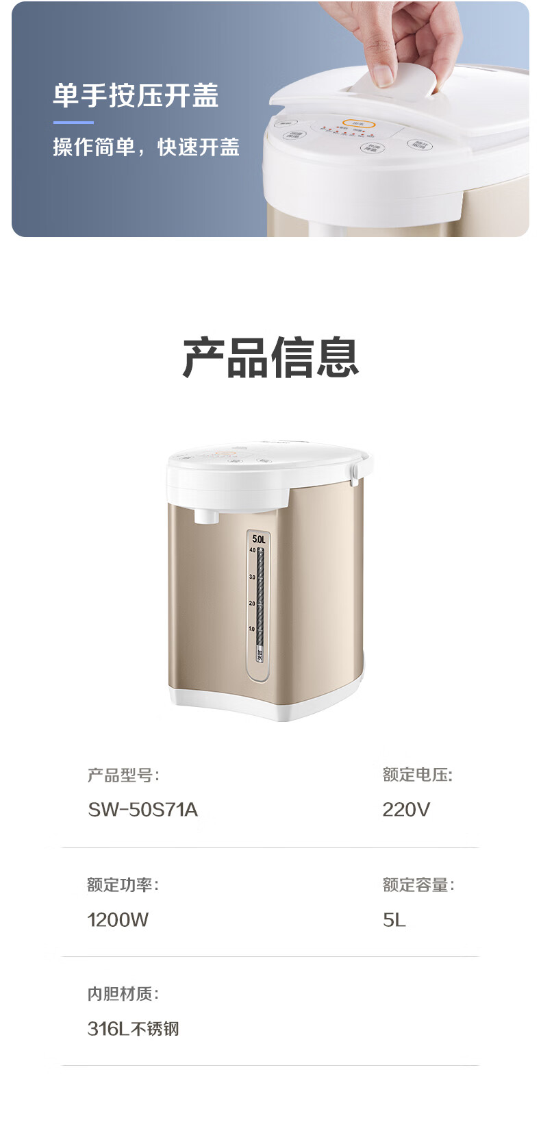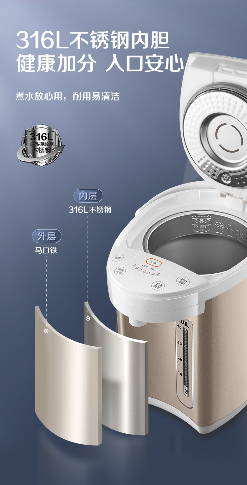 苏泊尔(SUPOR)电热水瓶家用5升容量316L电水壶 6段温控SW-50S71A/台 金色