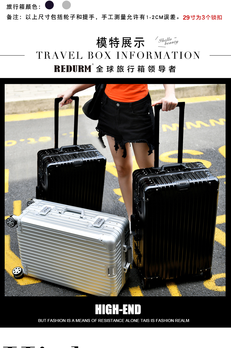 瑞德姆全铝镁拉杆箱经典款20寸RL-QL1802 单位:个 黑色 20寸