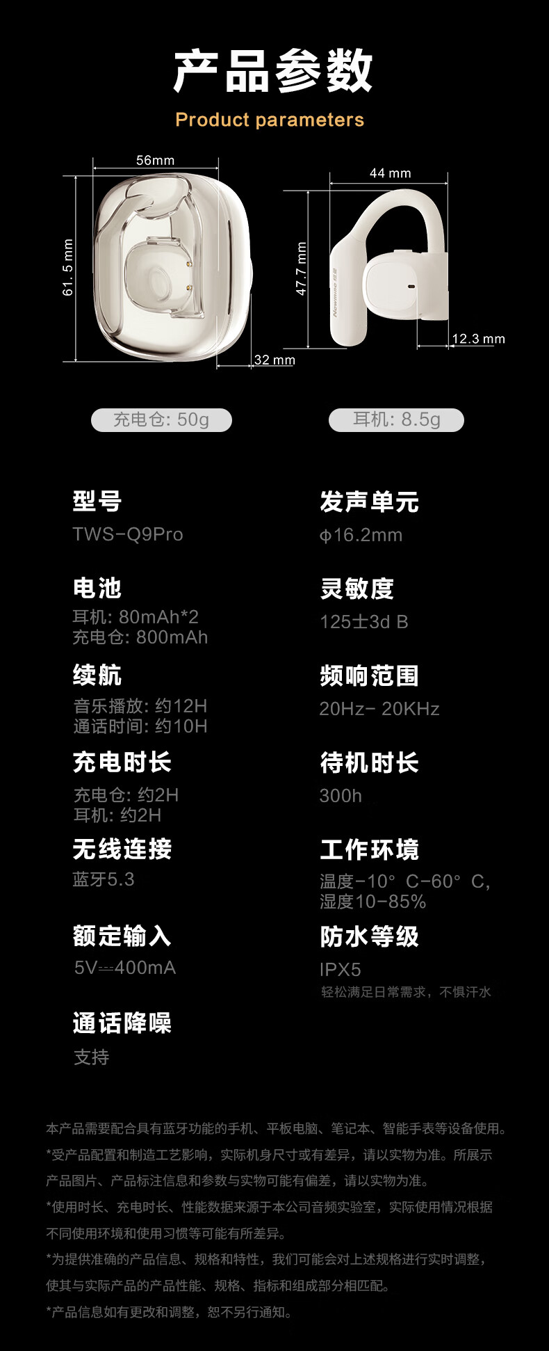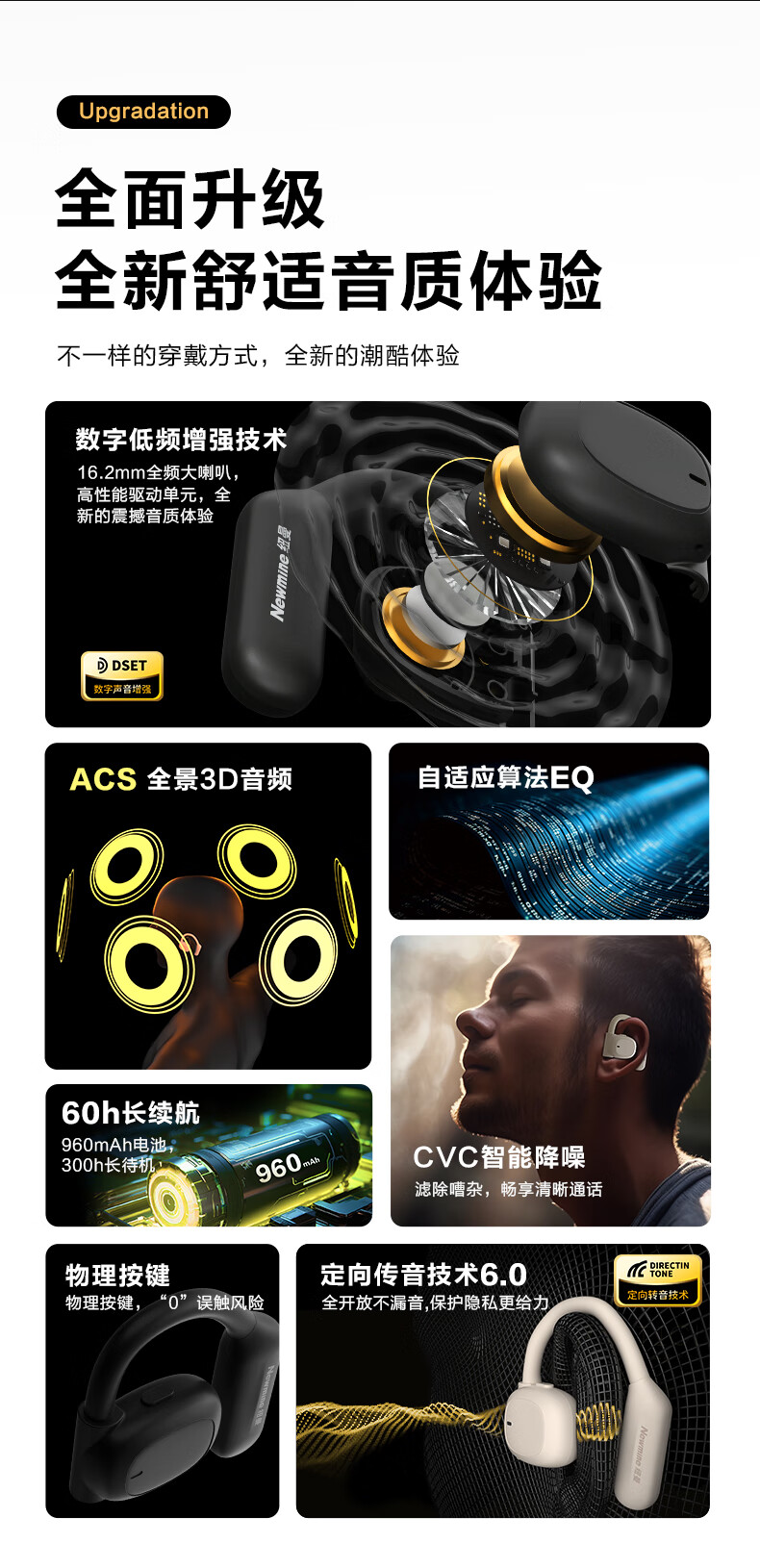 纽曼(Newmine) OWS开放式蓝牙耳机 Q9升级版 800mah 曜石黑(单位:付)
