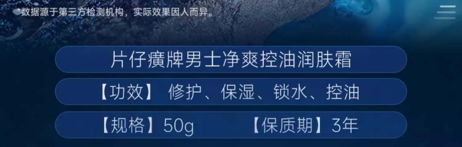 片仔癀牌男士净爽控油润肤霜50g(单位:瓶) G104