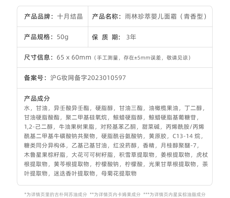 十月结晶 雨林滋养面霜SH932(单位:个) 粉色