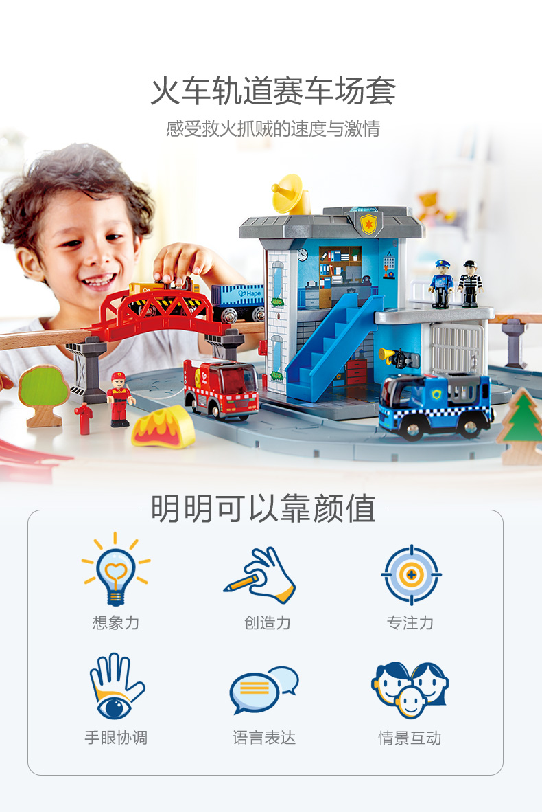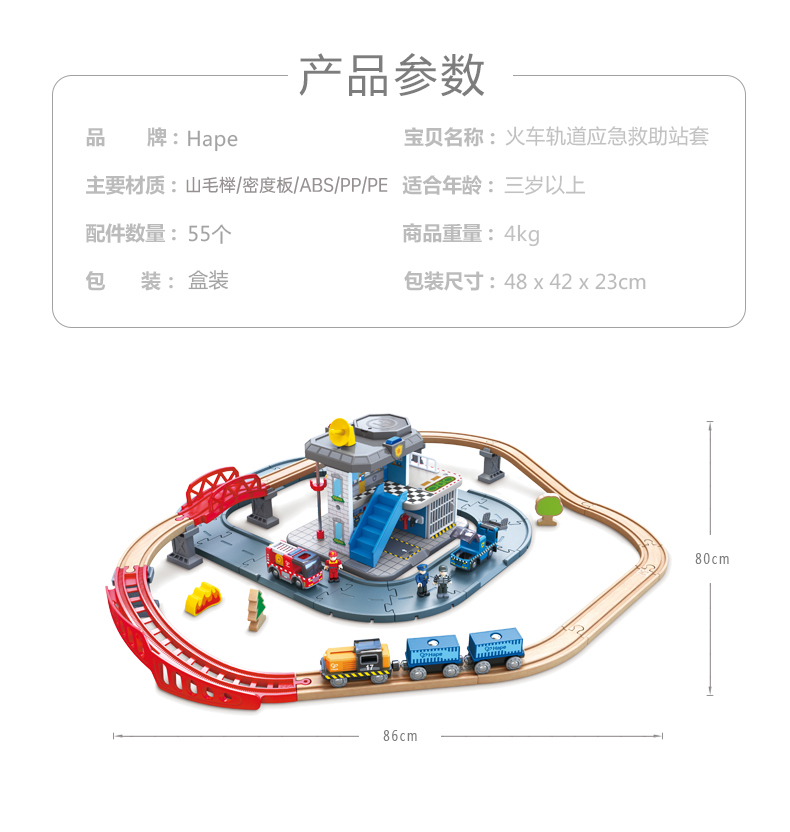 Hape轨道玩具儿童玩具木质拼插多层大型火车轨道套装 (单位:套) E3736