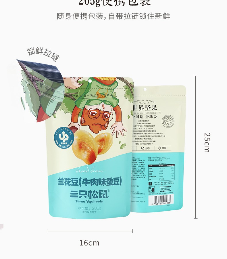 【三只松鼠】专属礼包_兰花豆/牛肉味/205g(单位:袋) 绿色