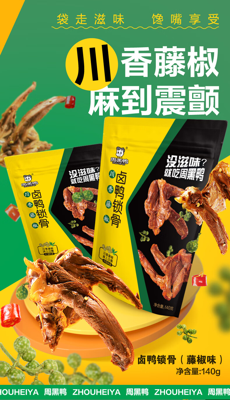 【周黑鸭】卤鸭脖(藤椒味)【颗粒140g】(单位:袋) 黑色