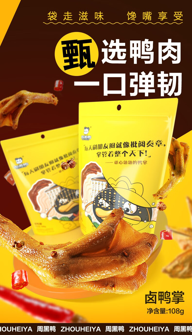 【周黑鸭】卤鸭掌(藤椒味)【颗粒108g】(单位:袋) 黑色