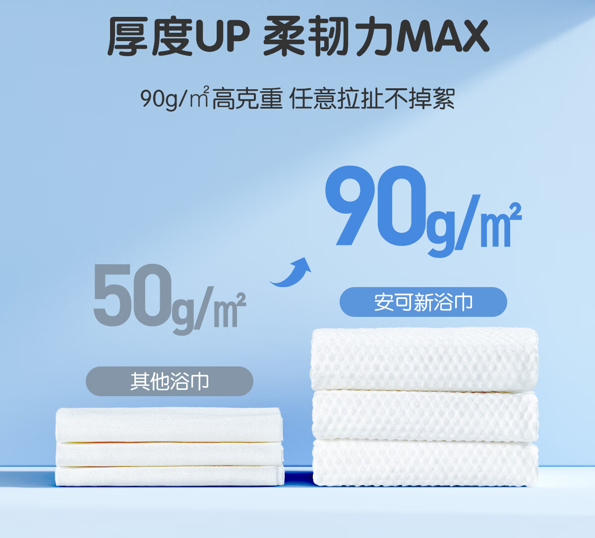 安可新一次性浴巾加厚加大珍珠纹旅游出行酒店便携独立装母婴级70*140cm 浴巾10条(单位:条) 混色