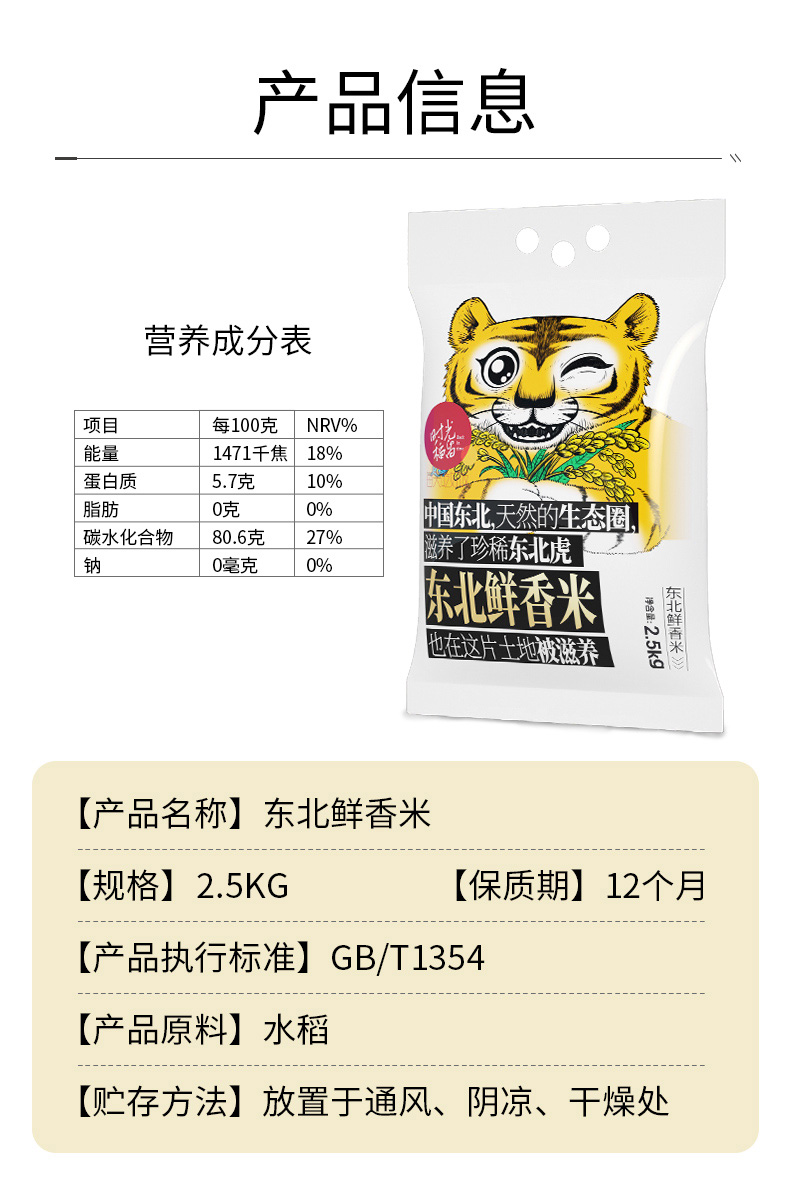 时光稻留 东北鲜香米2.5kg(单位:袋) 图片色