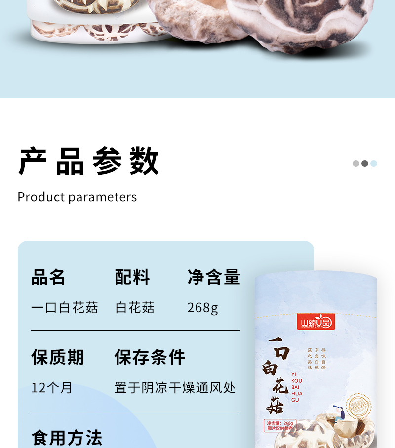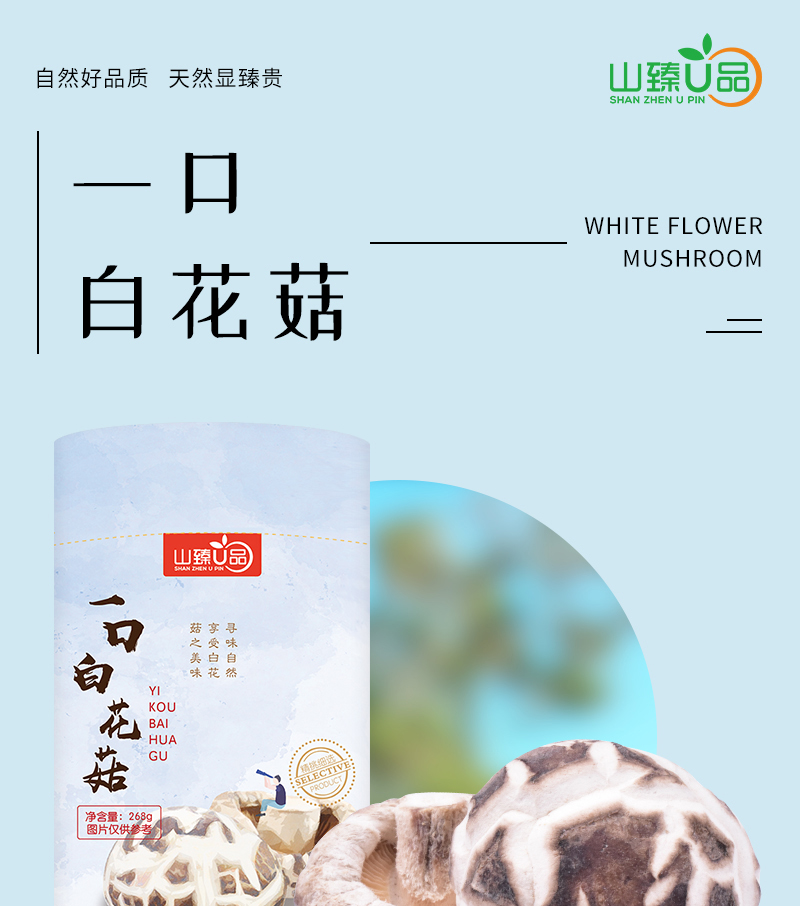山臻U品一口白花菇268g /罐
