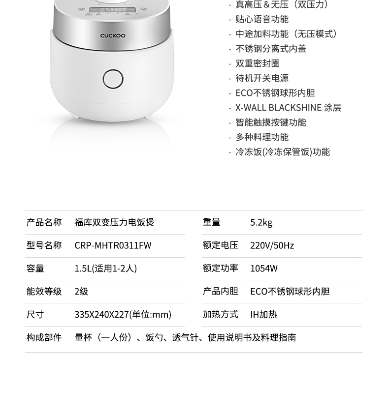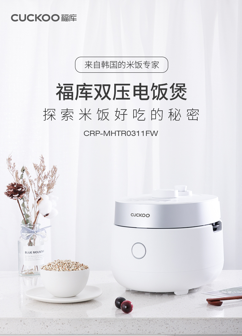 CUCKOO福库CRP-MHTR0311FW韩国原装进口IH加热双变压力多功能电饭煲(单位:台) 白色