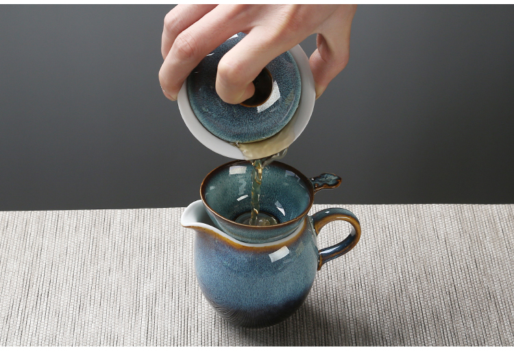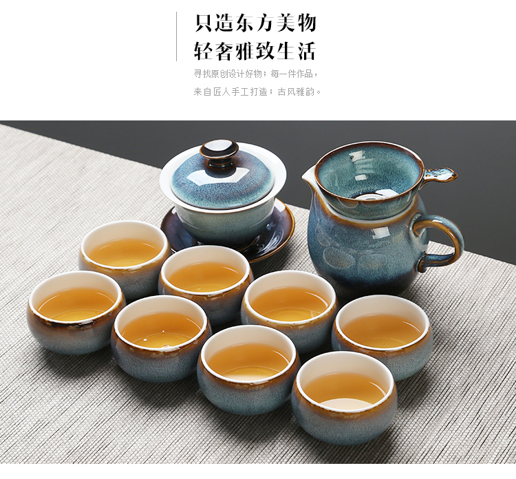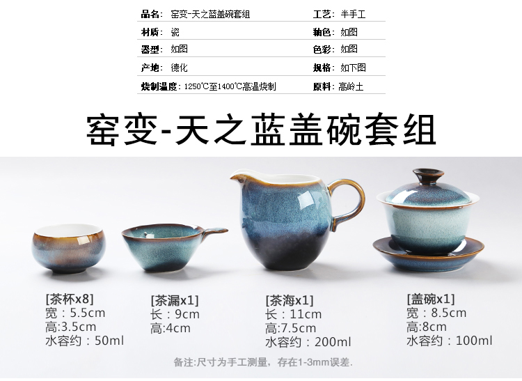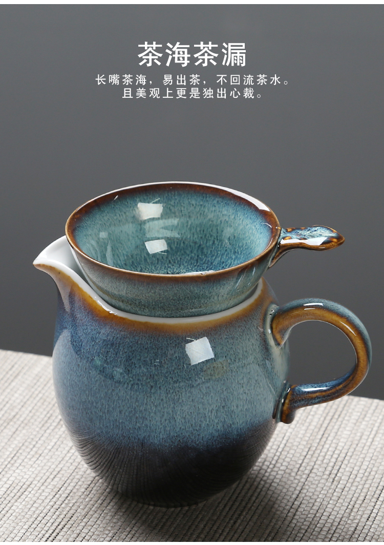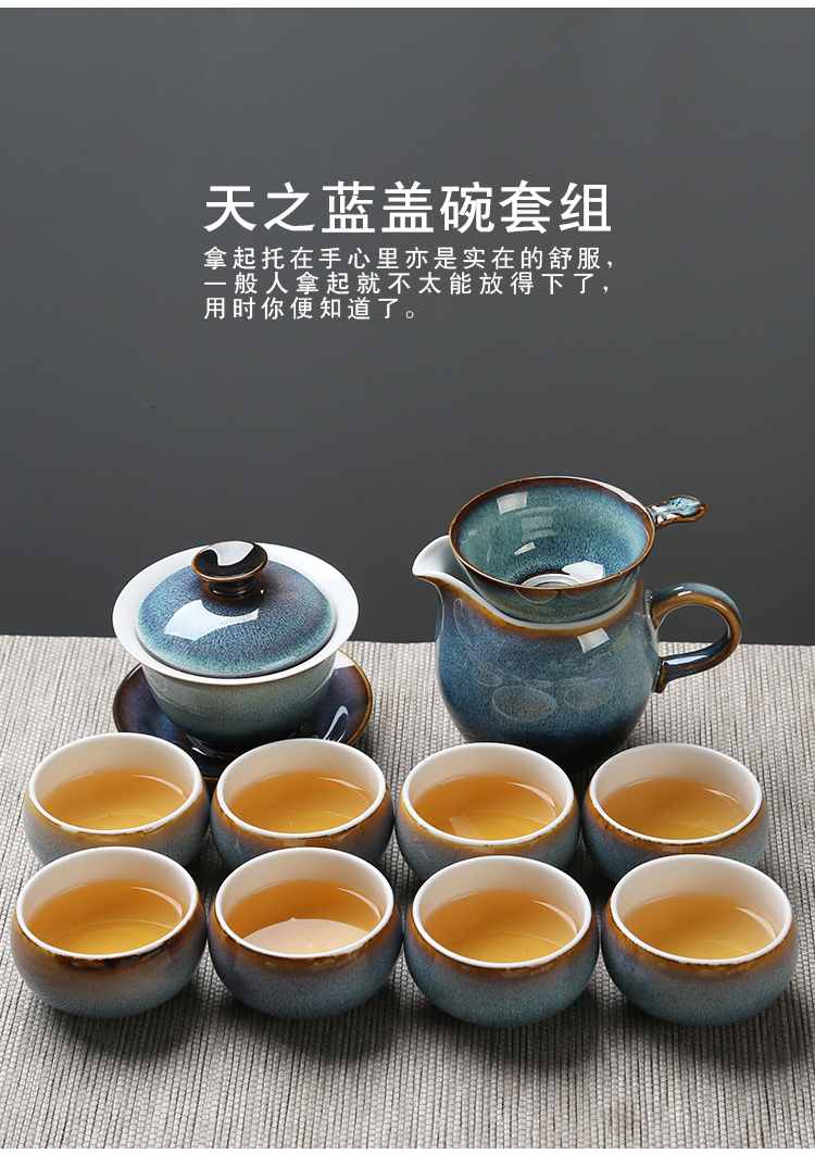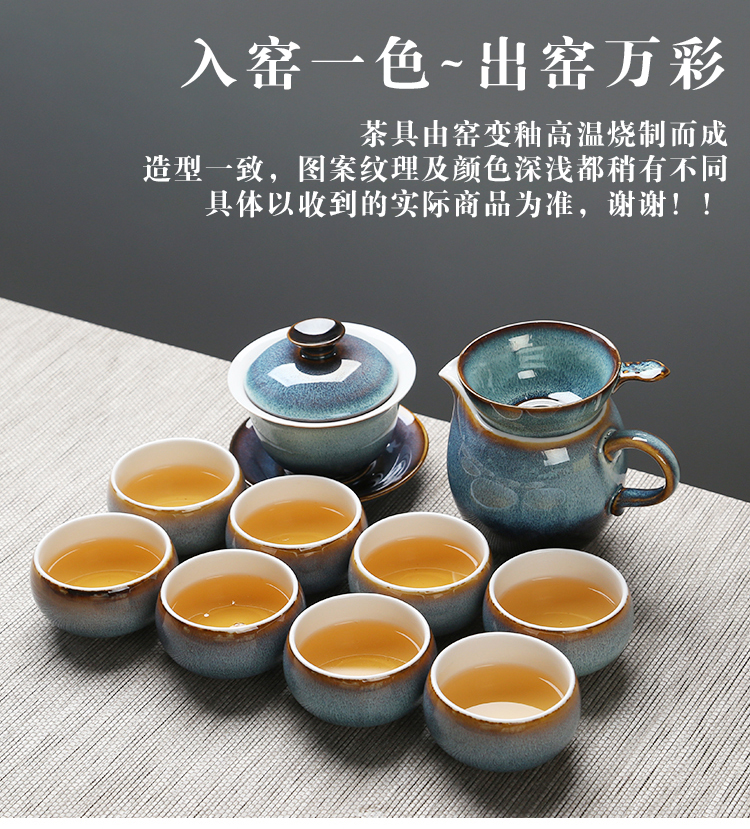 苏氏陶瓷(SUSHI CERAMICS)G76264-1茶具套装新窑变银丝釉13头(单位:套) 蓝色