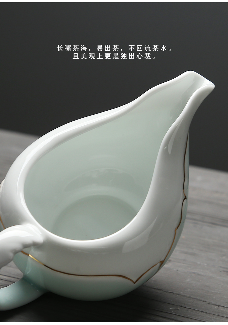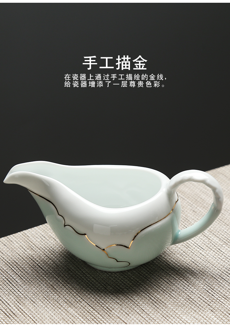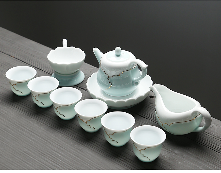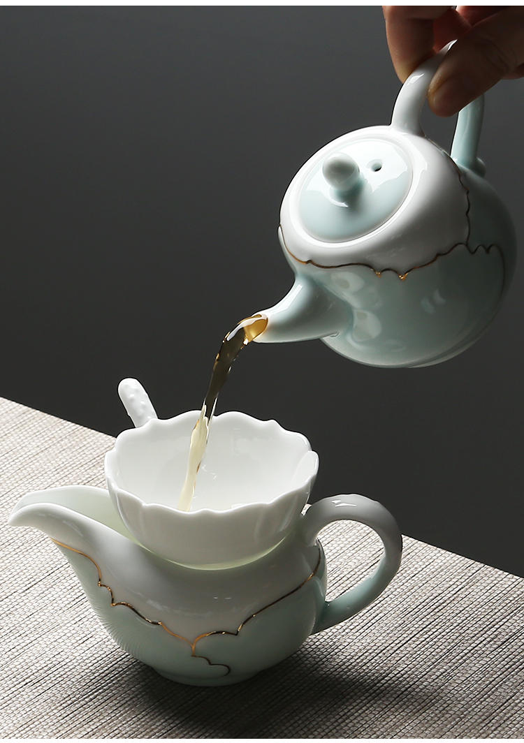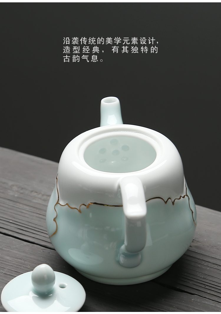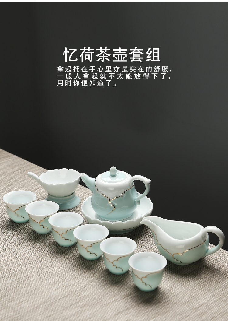 苏氏陶瓷(SUSHI CERAMICS) J0016茶具套装忆荷手绘描金茶壶茶杯10头(单位:套) 青瓷