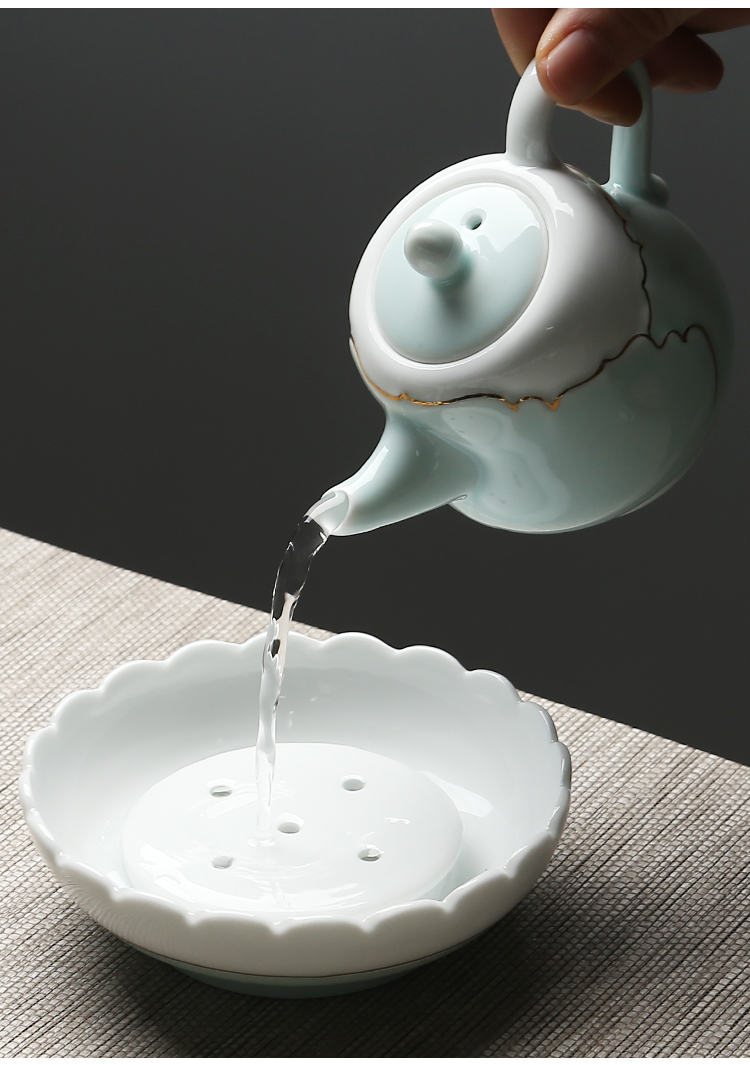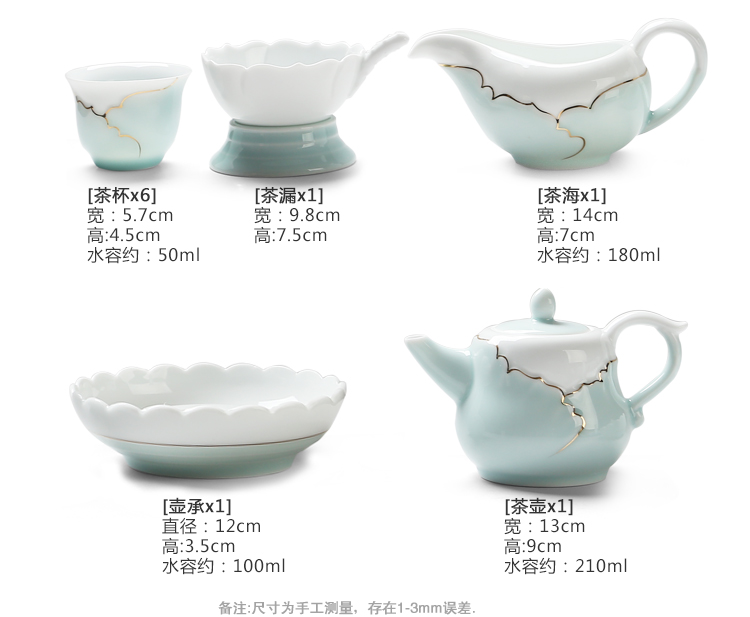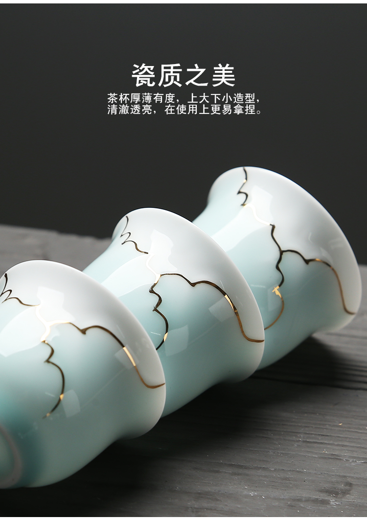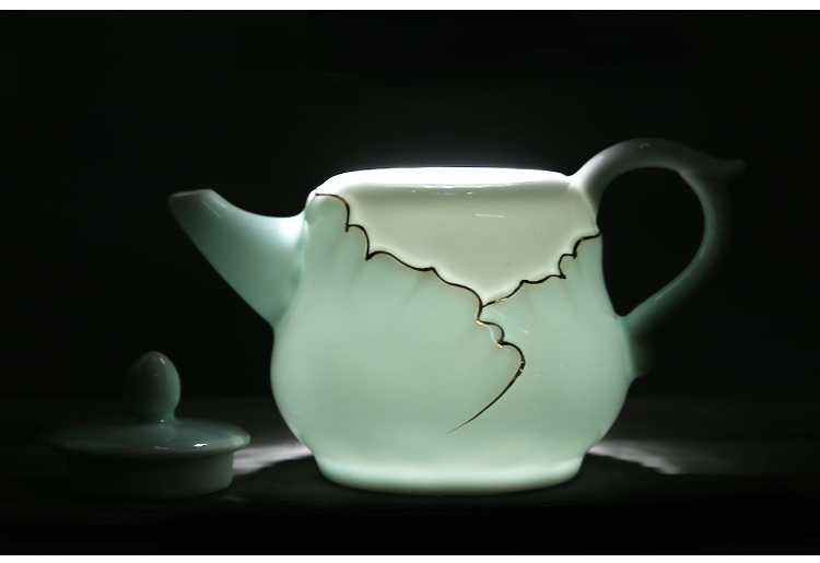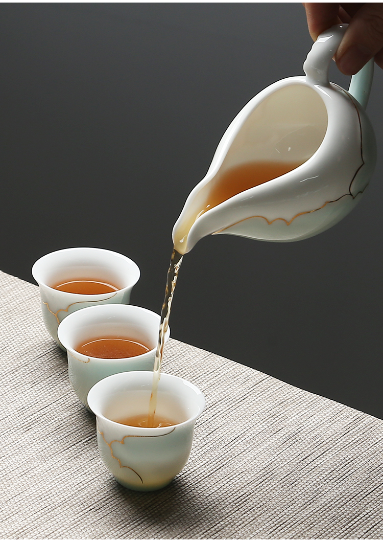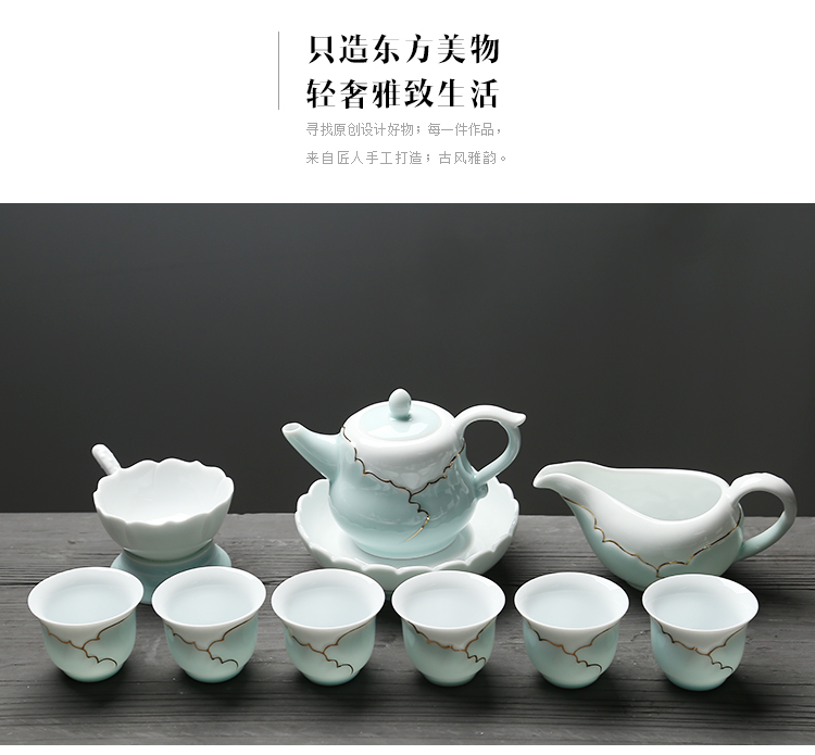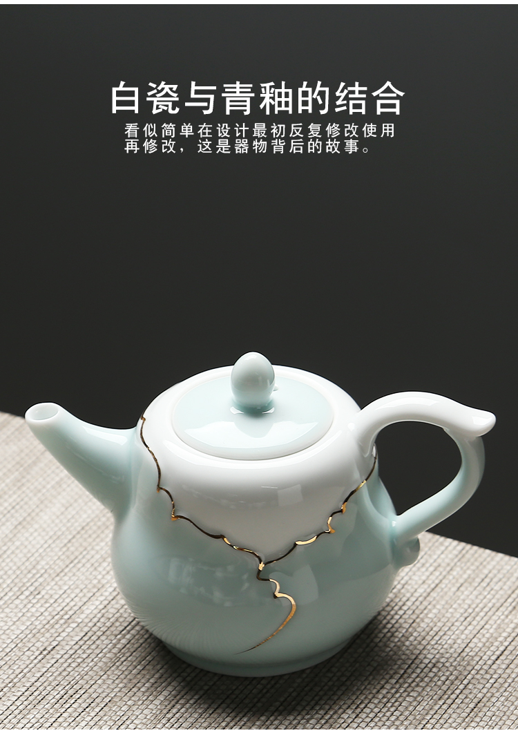 苏氏陶瓷(SUSHI CERAMICS) J0016茶具套装忆荷手绘描金茶壶茶杯10头(单位:套) 青瓷