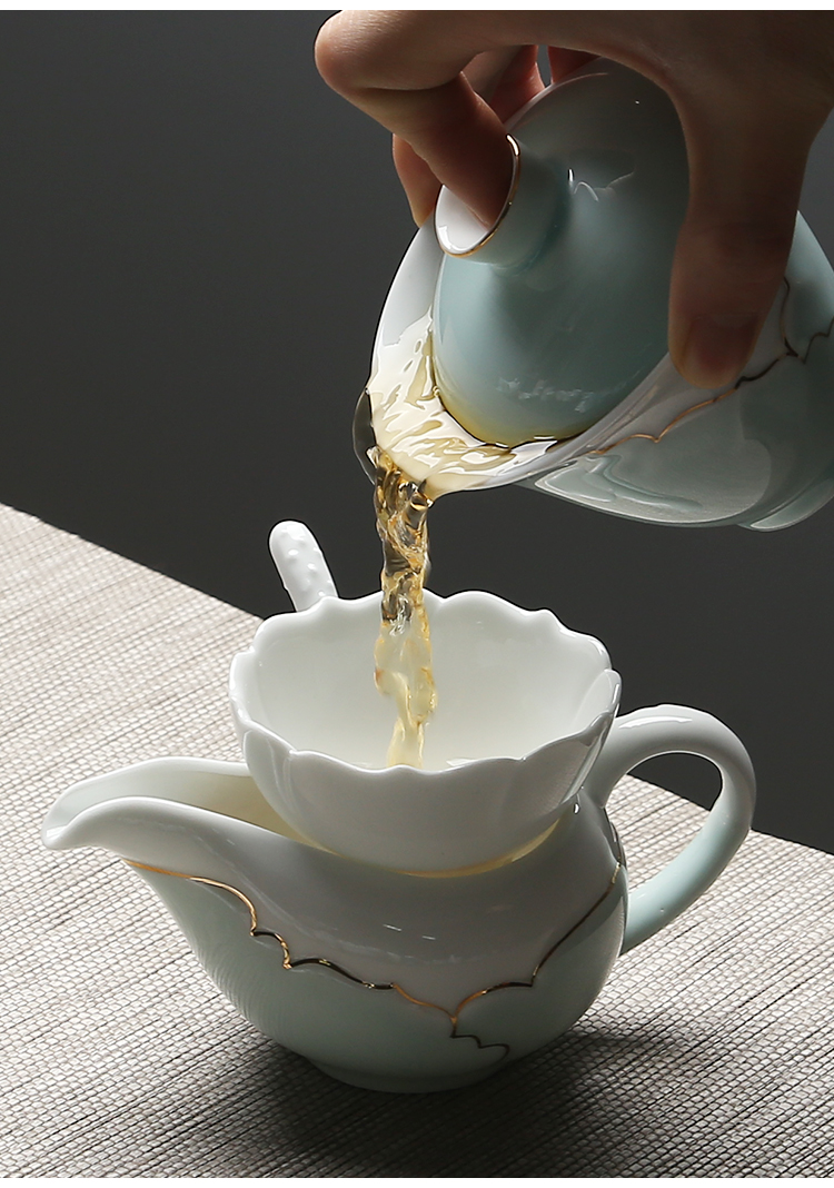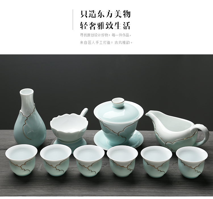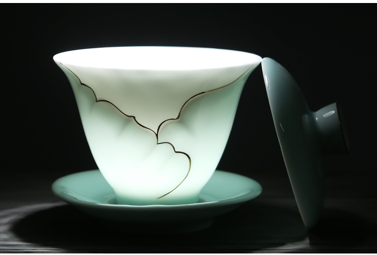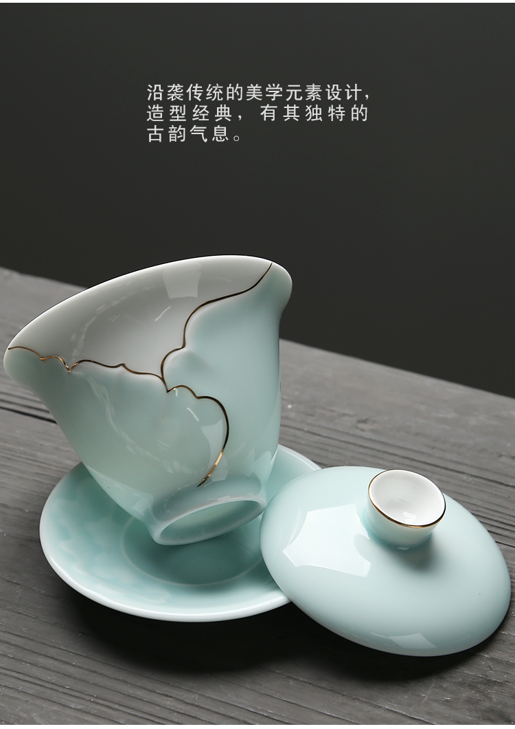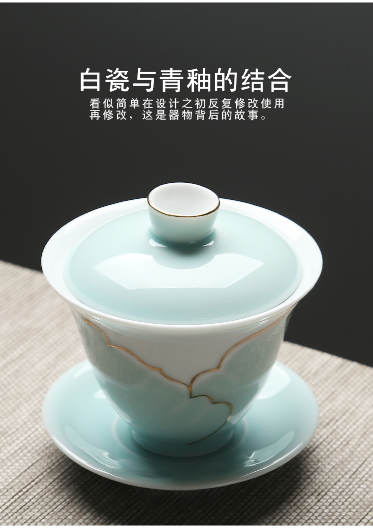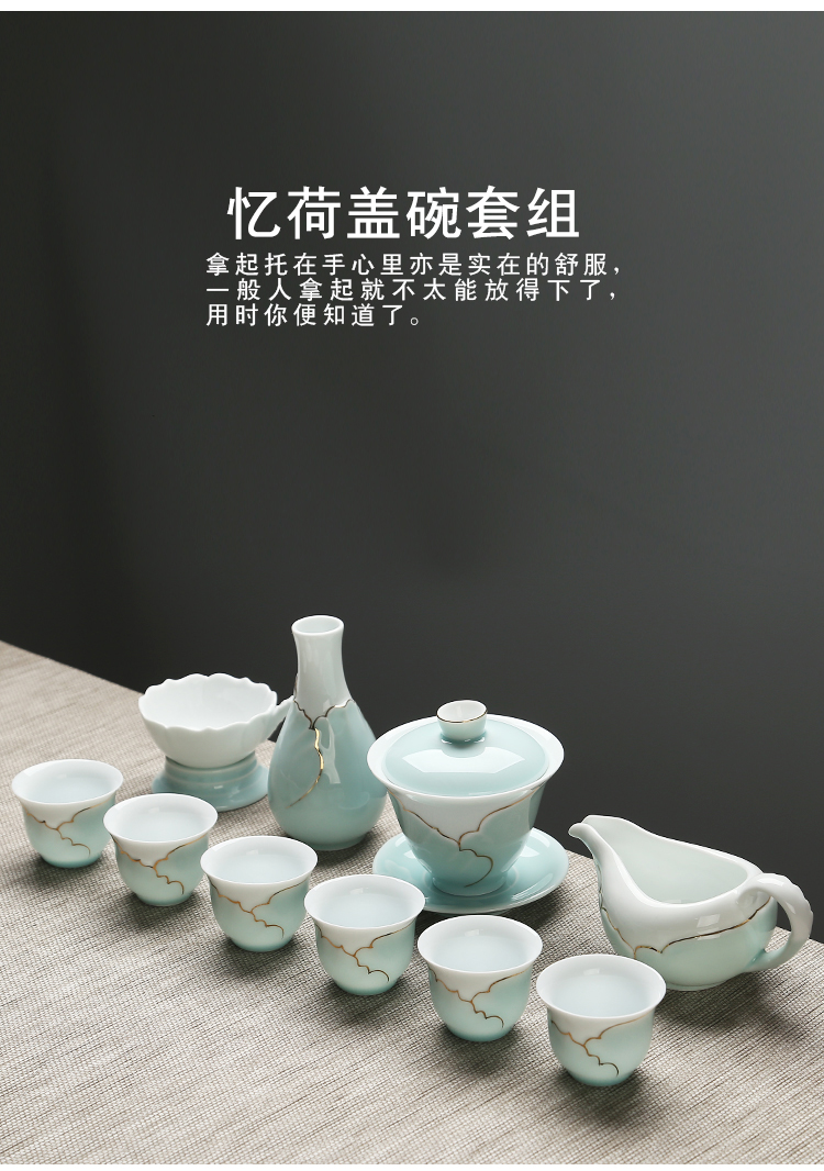 苏氏陶瓷(SUSHI CERAMICS) J0016茶具套装忆荷手绘描金盖碗茶杯10头(单位:套) 青瓷